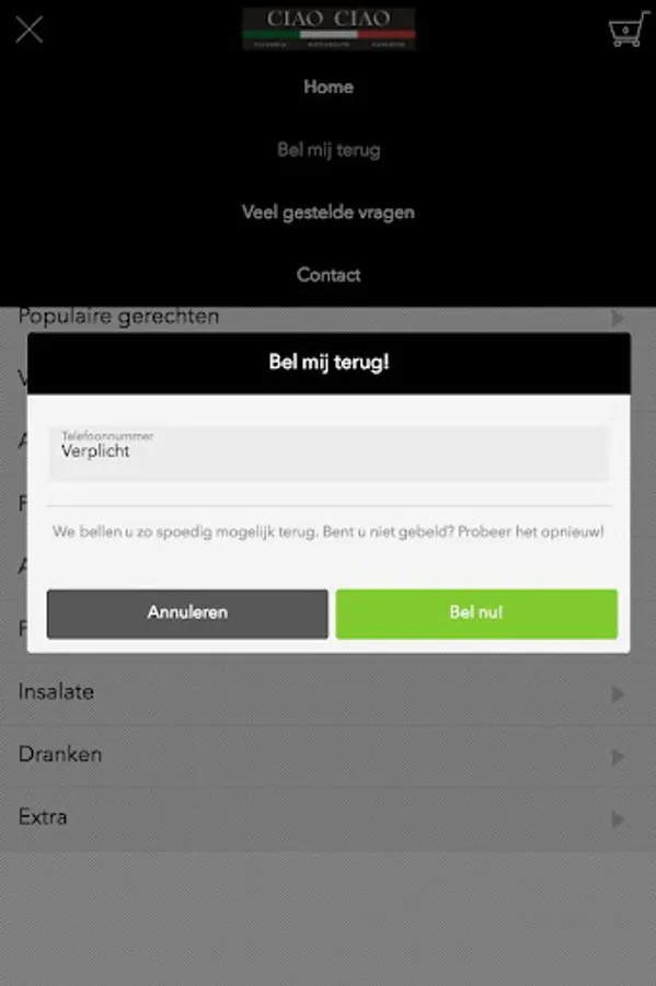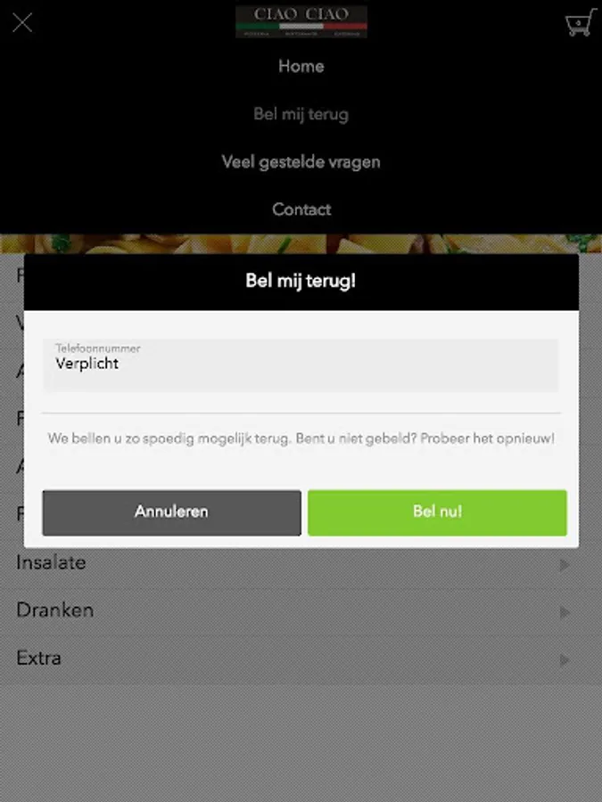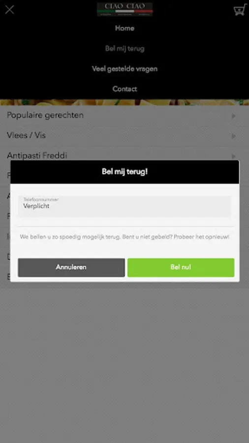 Do you have a question and / or comment about a particular dish and would you like to be called back by us? You can do this by pressing the '' Call me back '' button and you will be called back free of charge!