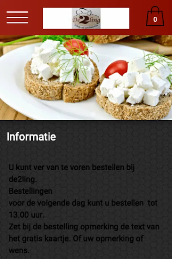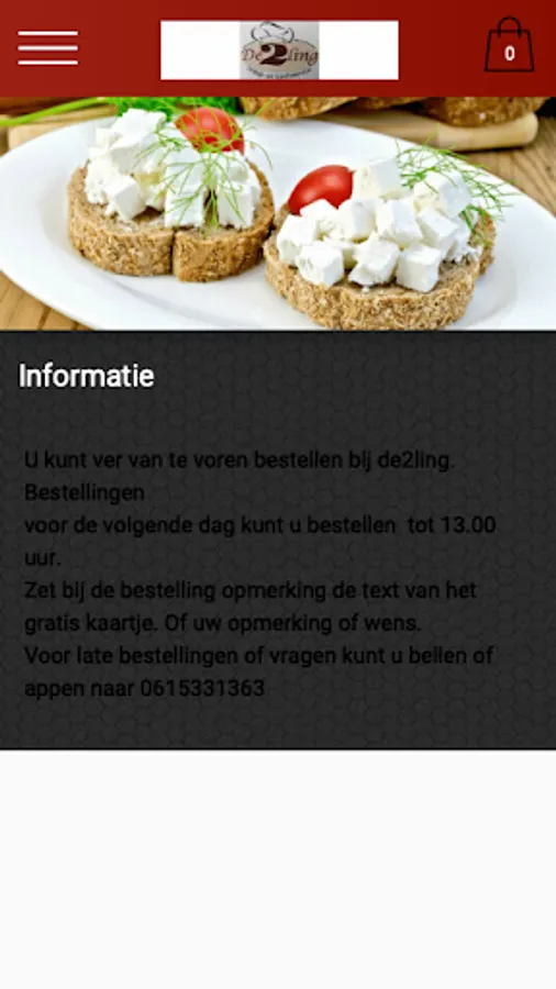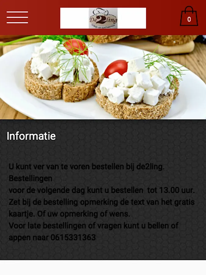 The De 2ling Leeuwarden app has been created to make it easier and faster to place an order through a simple menu. In the menu you can choose popular dishes, but you can also create your own menu.