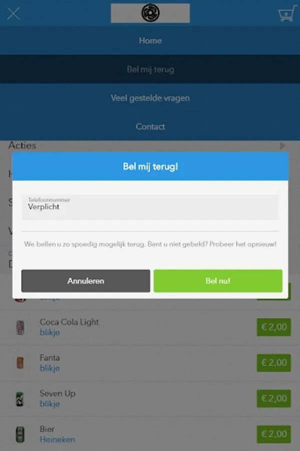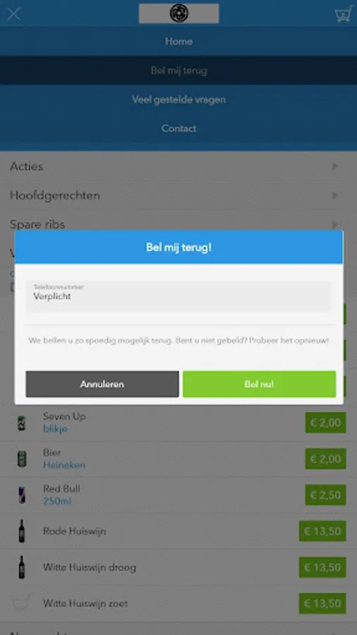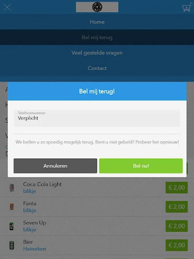 Do you have a question and / or comment on a particular dish and you want to be called back by us? You can do this by pressing the '' Call me back 'button and you will be free of charge called back by us!