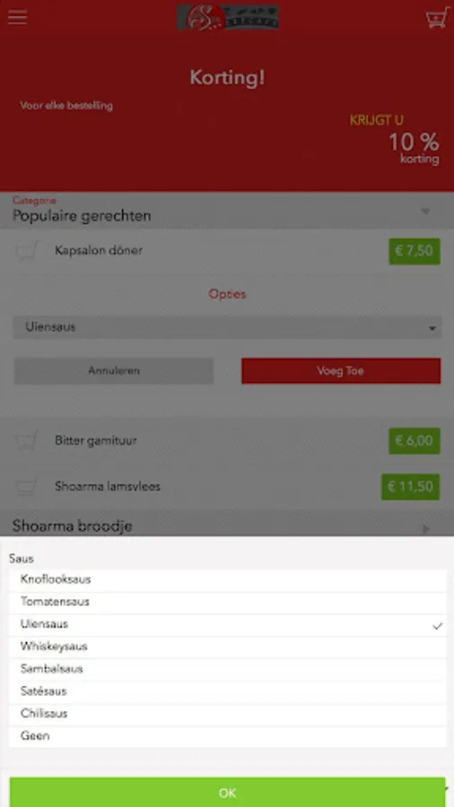 In the order history you can see what you have previously ordered from our restaurant. If you press the order button the order will automatically get into the cart. So you do not have to select all again and you can immediately place your order.