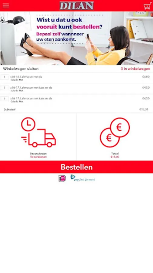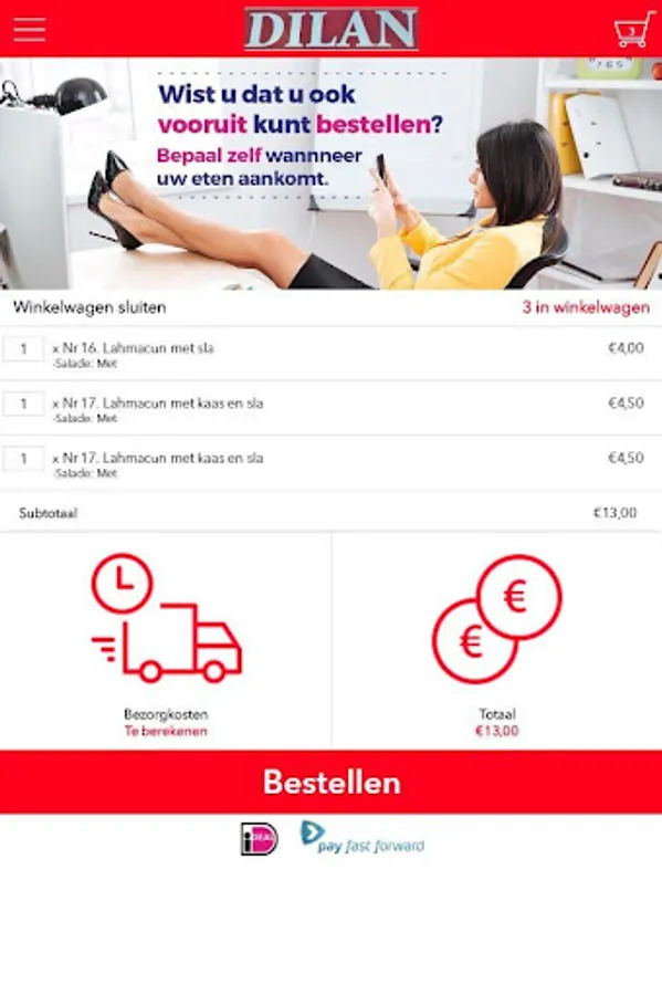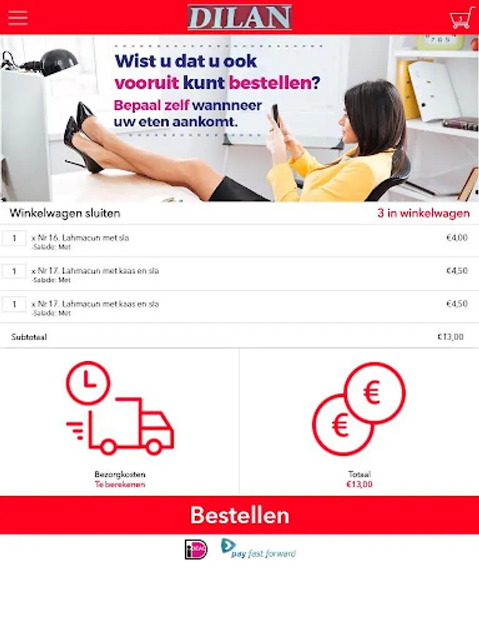 You can safely and easily with your mobile to pay with iDEAL or natural cash at the door.