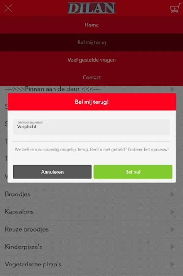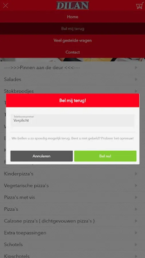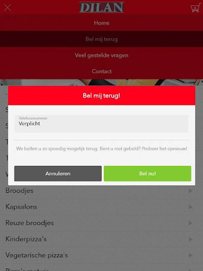 Do you have a question and / or comment on a particular dish and you want to be called back by us? You can do this by pressing the '' Call me back 'button and you will be free of charge called back by us!