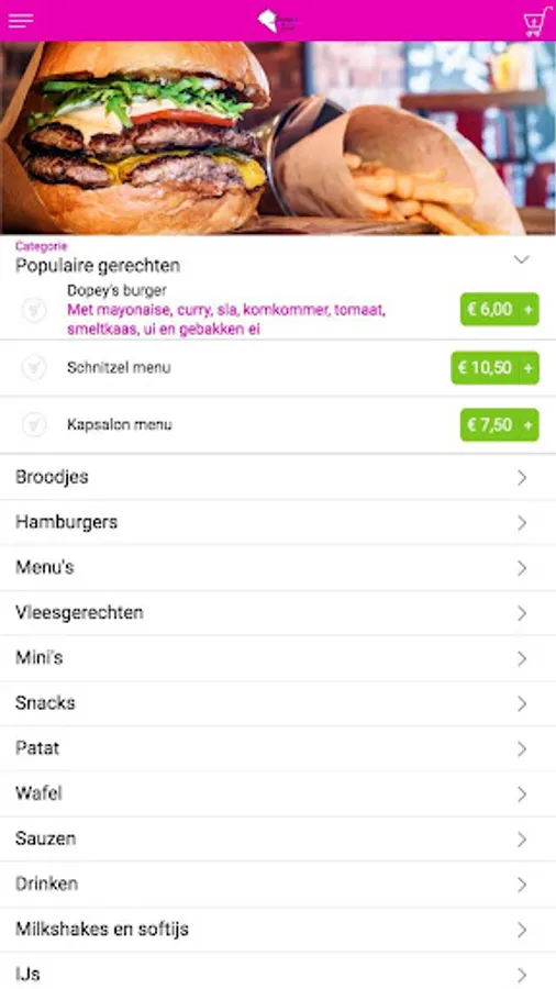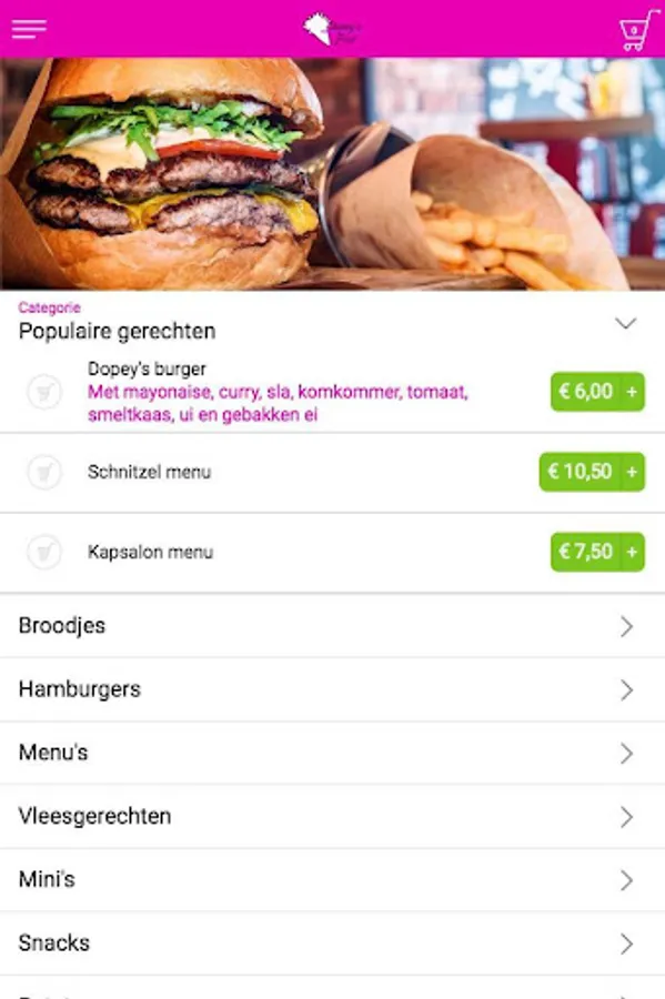 The Dopeys fries app is designed to place orders easier and faster using a simple menu. In the menu you can choose to include popular dishes, but you can also draw up a menu.