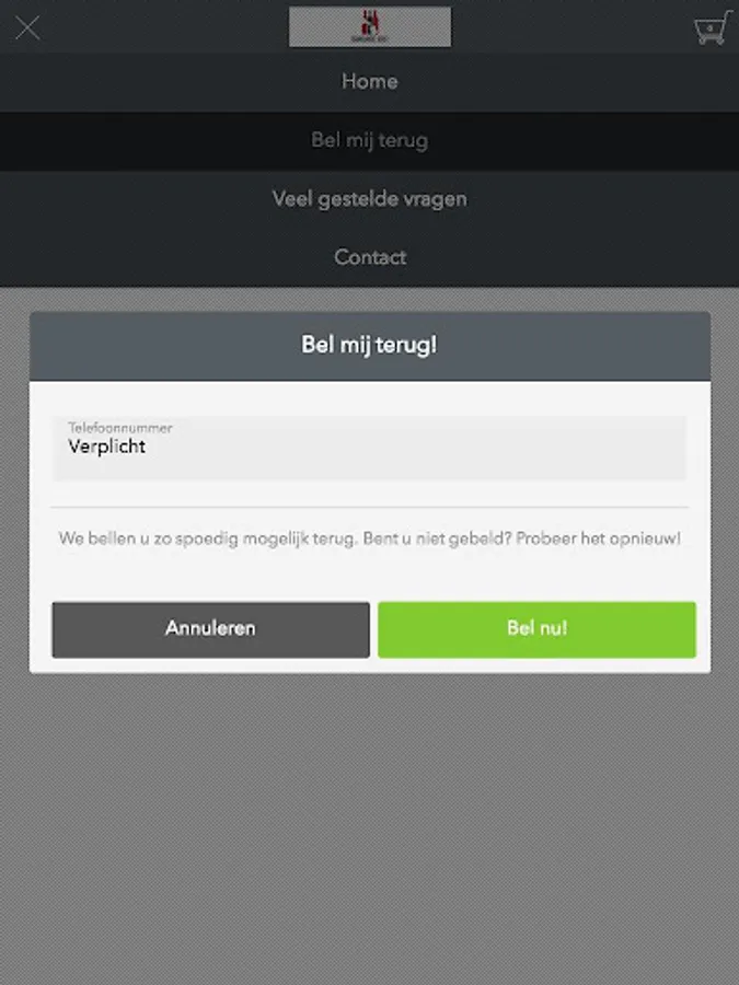 Do you have a question and / or comment on a particular dish and you want to be called back by us? You can do this by pressing the '' Call me back 'button and you will be free of charge called back by us!