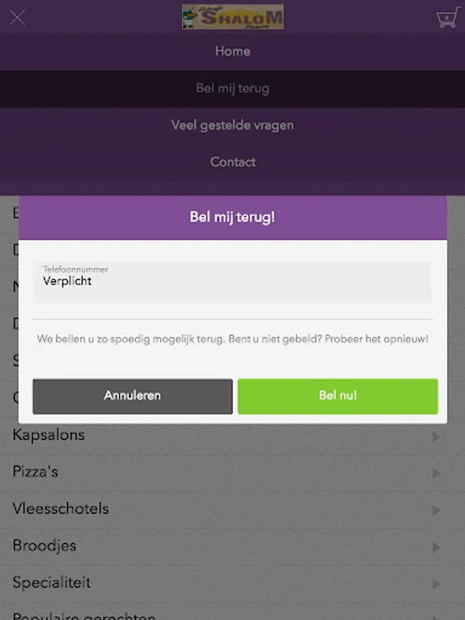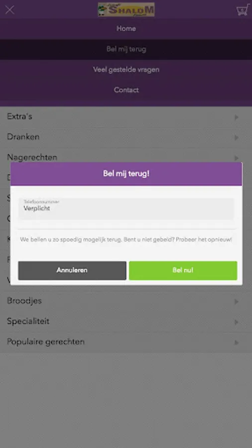 Do you have a question and / or comment about a particular dish and would you like to be called back by us? You can do this by pressing the '' Call me back '' button and you will be called back free of charge!