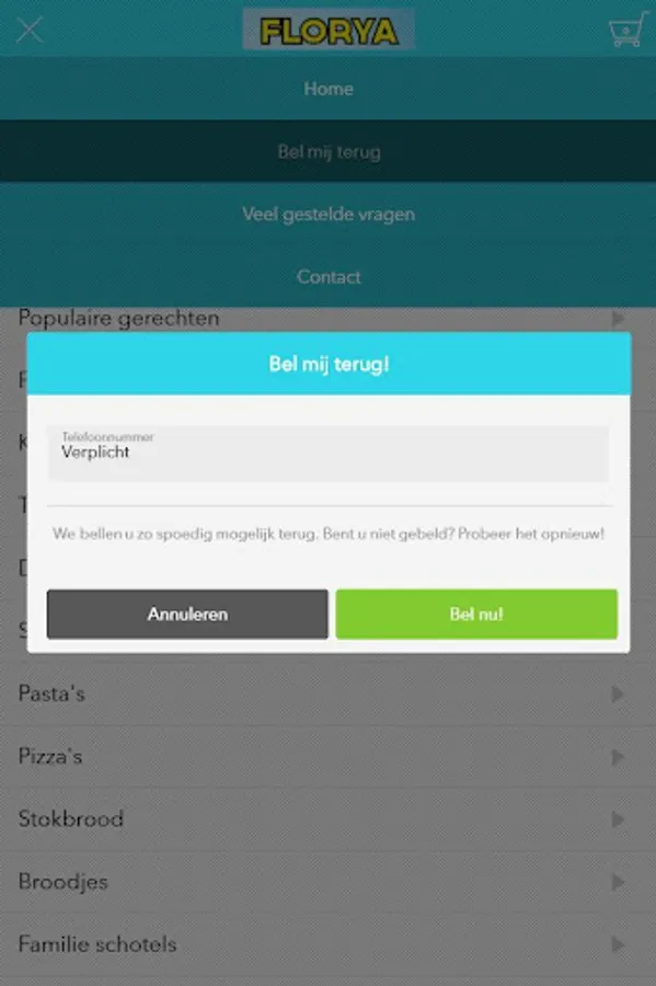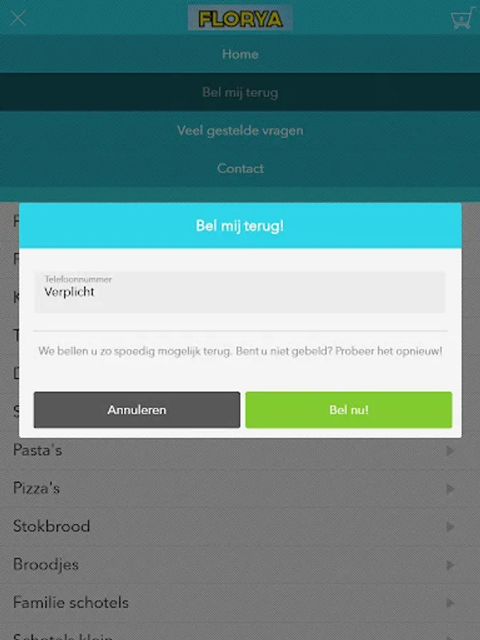 Do you have a question and / or comment on a particular dish and you want to be called back by us? You can do this by pressing the '' Call me back 'button and you will be free of charge called back by us!