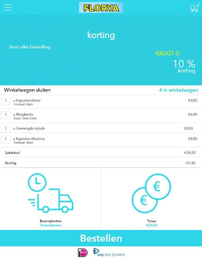 The Florya Heesch app is designed to be able to place orders easily and quickly by means of a simple menu. In the menu you can choose to include popular dishes, but you can also draw up a menu.