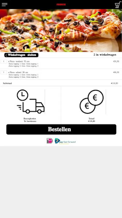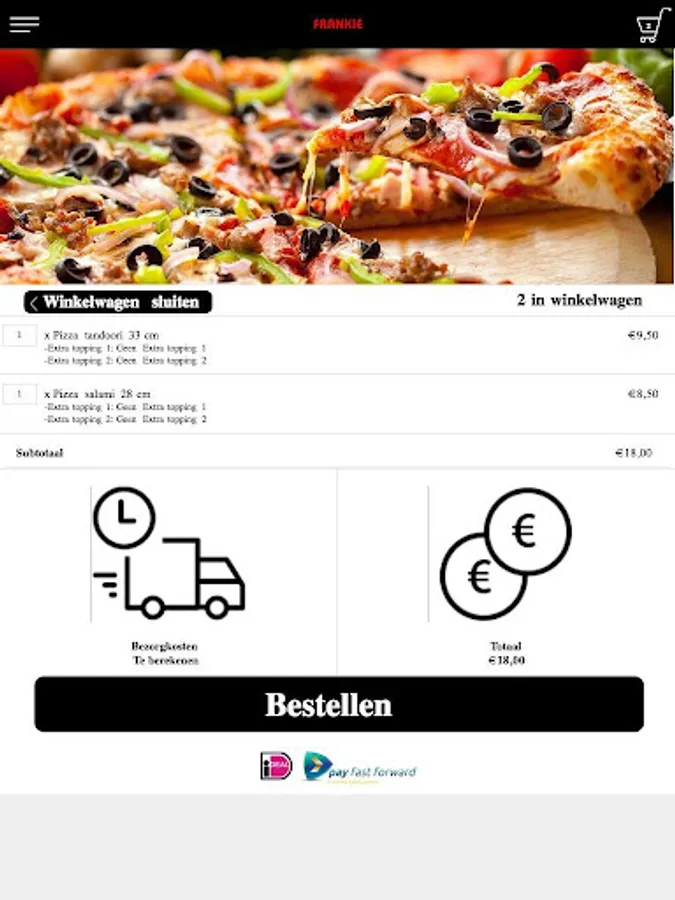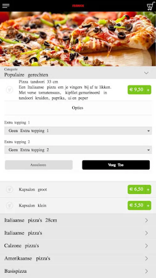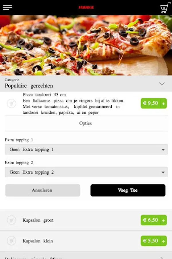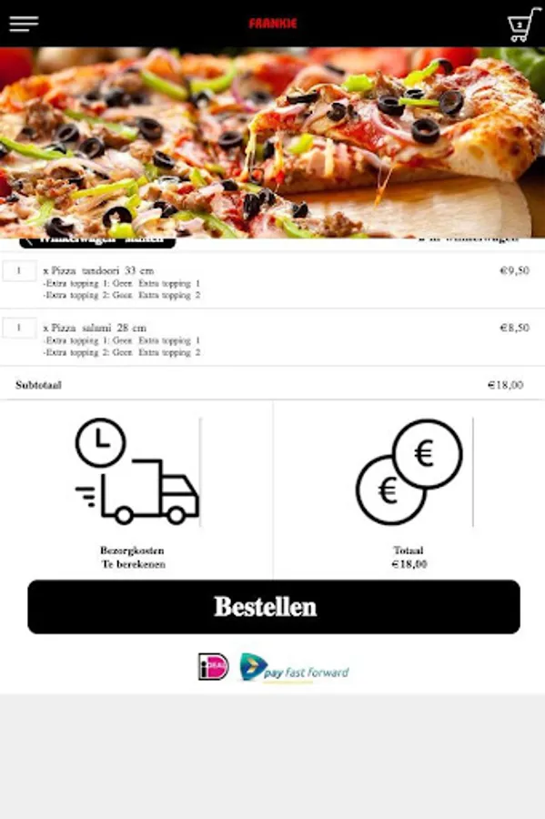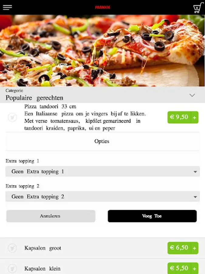 The Frankie Den Haag app is made to be able to place an order easier and faster by means of a simple menu. In the menu you can choose popular dishes, but you can also create a menu yourself.