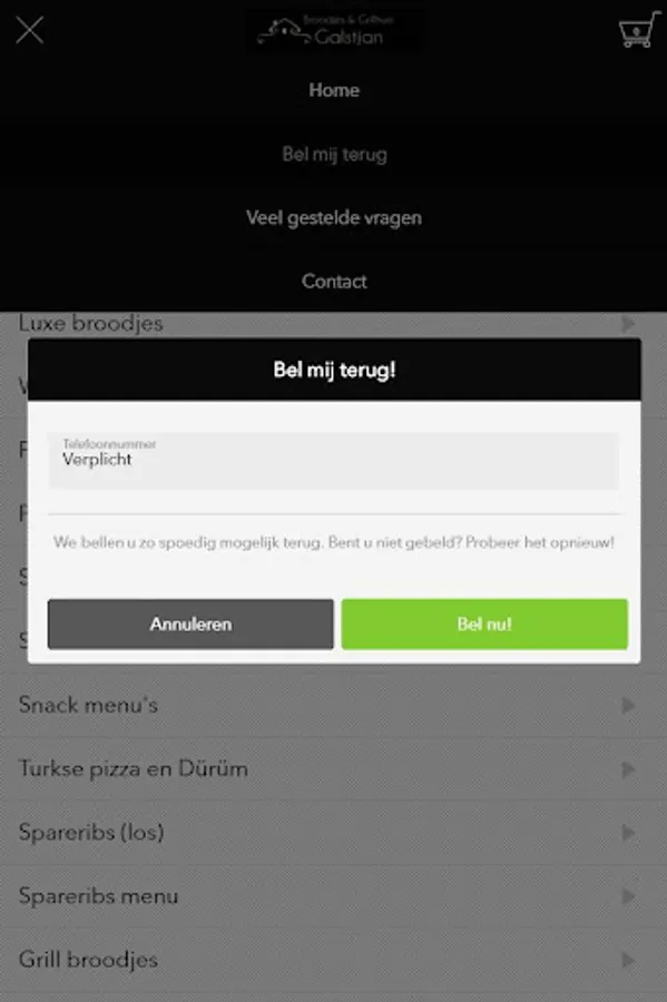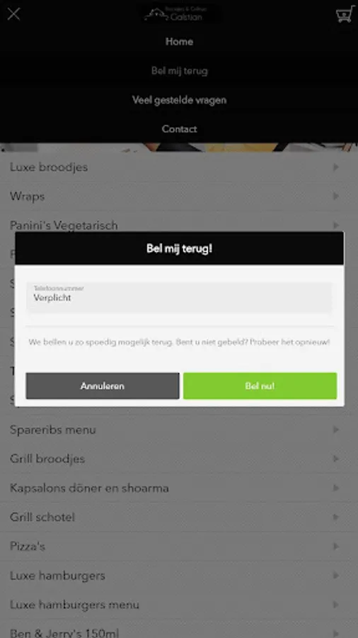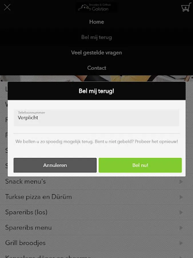 Do you have a question and / or comment on a particular dish and you want to be called back by us? You can do this by pressing the '' Call me back 'button and you will be free of charge called back by us!