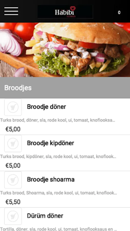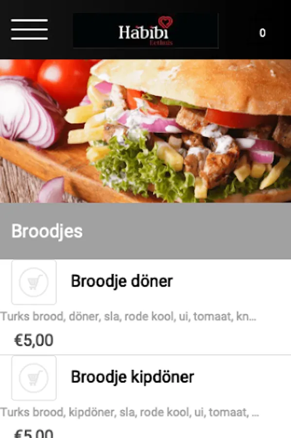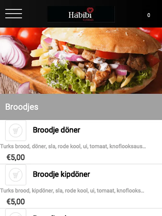 The Habibi diner Tilburg app is made to make it easier and faster to place an order by means of a simple menu. In the menu you can choose popular dishes, but you can also create your own menu.