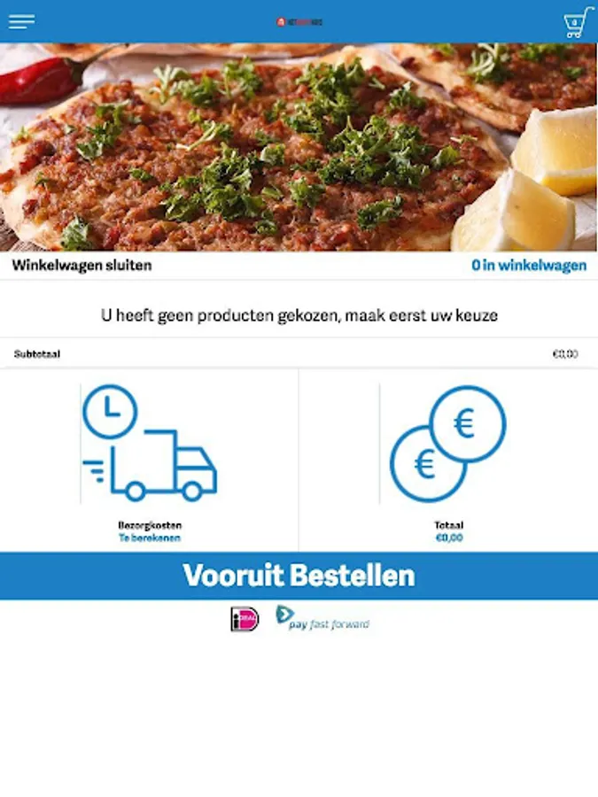 The Het Bonte House app is designed to place orders easier and faster using a simple menu. In the menu you can choose to include popular dishes, but you can also draw up a menu.