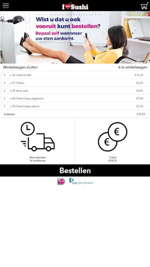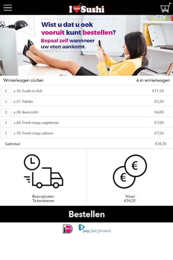 You can safely and easily with your mobile to pay with iDEAL or natural cash at the door.