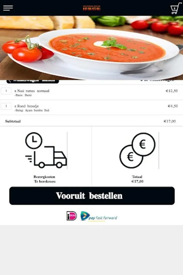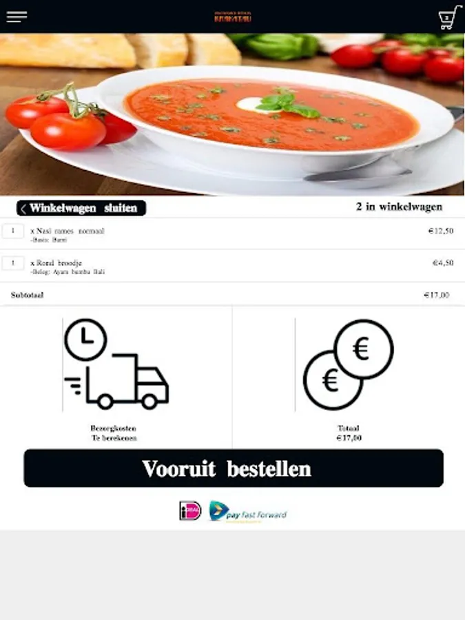 In the order history you can see what you have ordered before at our restaurant. If you press the order, the order will automatically end up in the shopping cart. So you do not have to select everything again and you can immediately place your order.