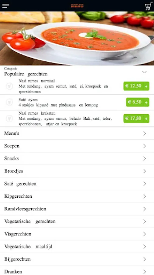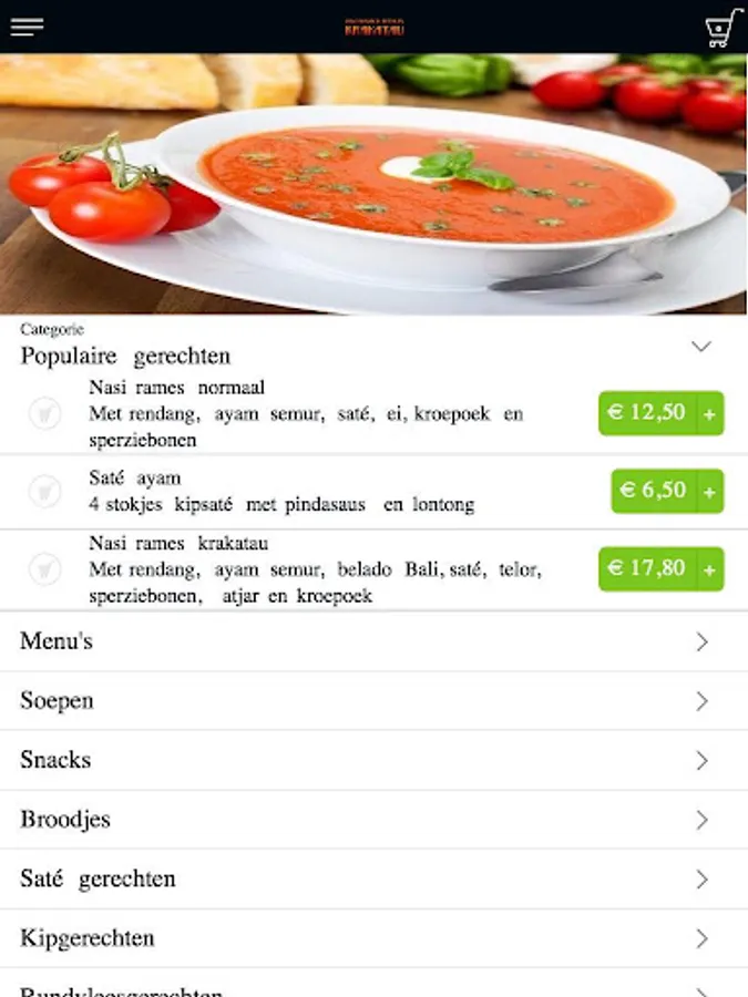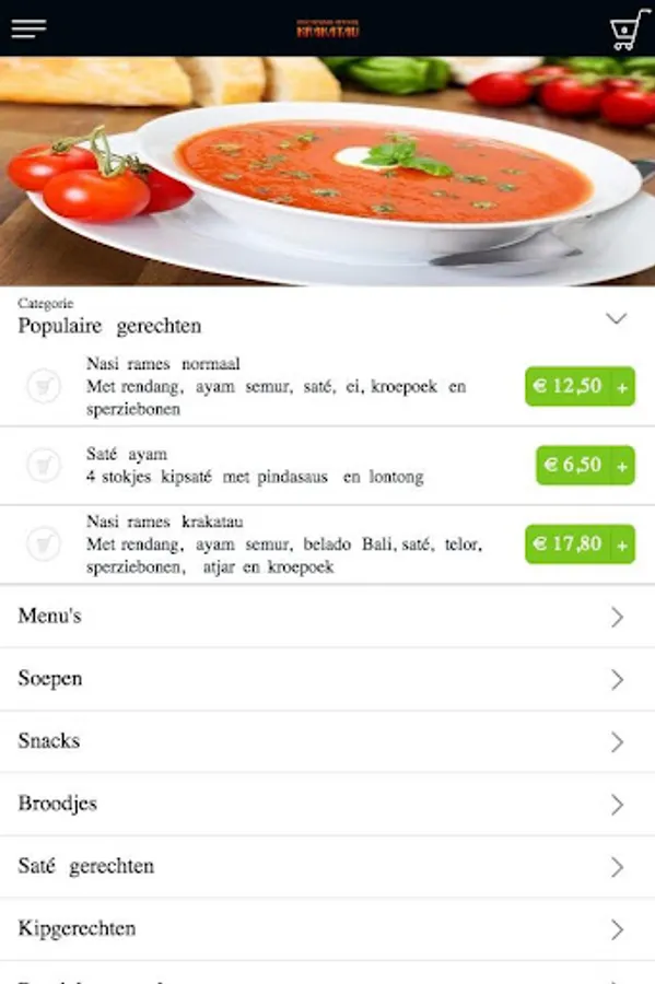 The Indonesian eatery Krakatau app is made to be able to place an order more easily and quickly by means of a simple menu. In the menu you can choose popular dishes, but you can also create a menu yourself.