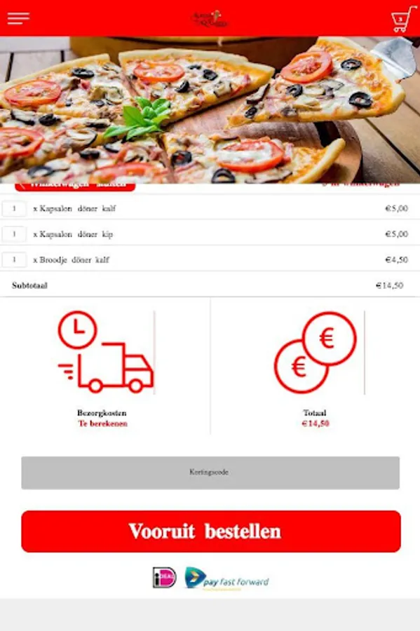 In the order history you can see what you have ordered before at our restaurant. If you press the order, the order will automatically end up in the shopping cart. So you do not have to select everything again and you can immediately place your order.