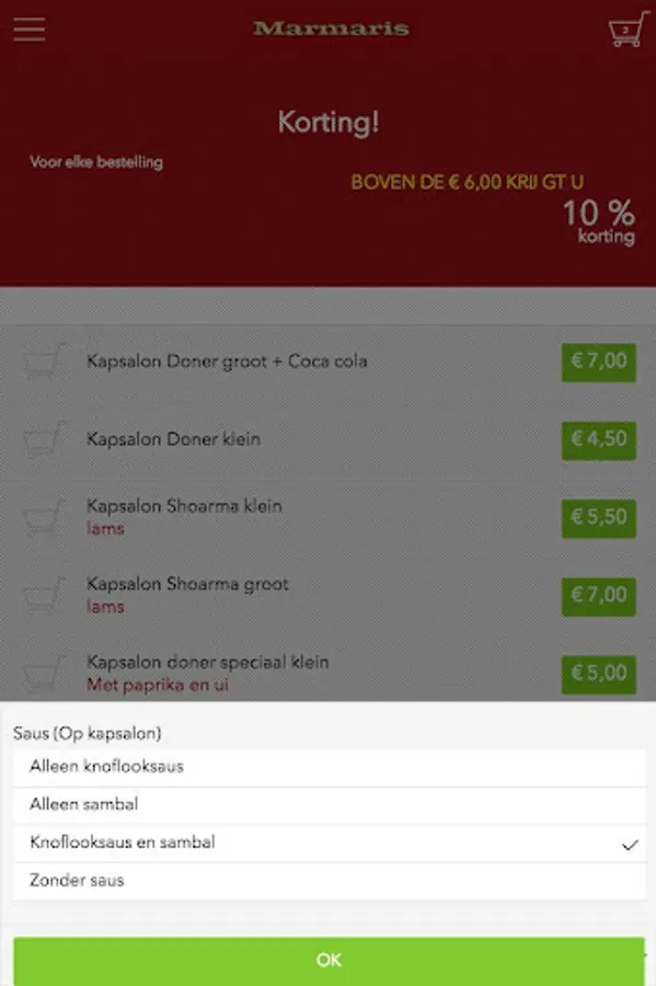 Marmaris Doner Delft app is designed to be able to place orders easily and quickly by means of a simple menu. In the menu you can choose to include popular dishes, but you can also draw up a menu.