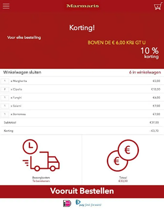 You can safely and easily with your mobile to pay with iDEAL or natural cash at the door.