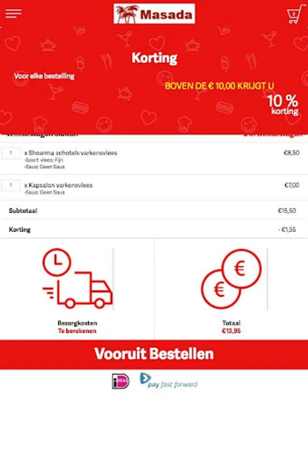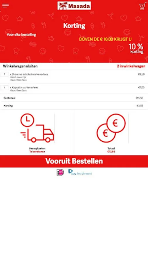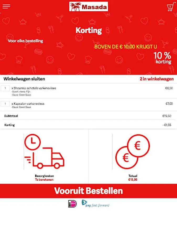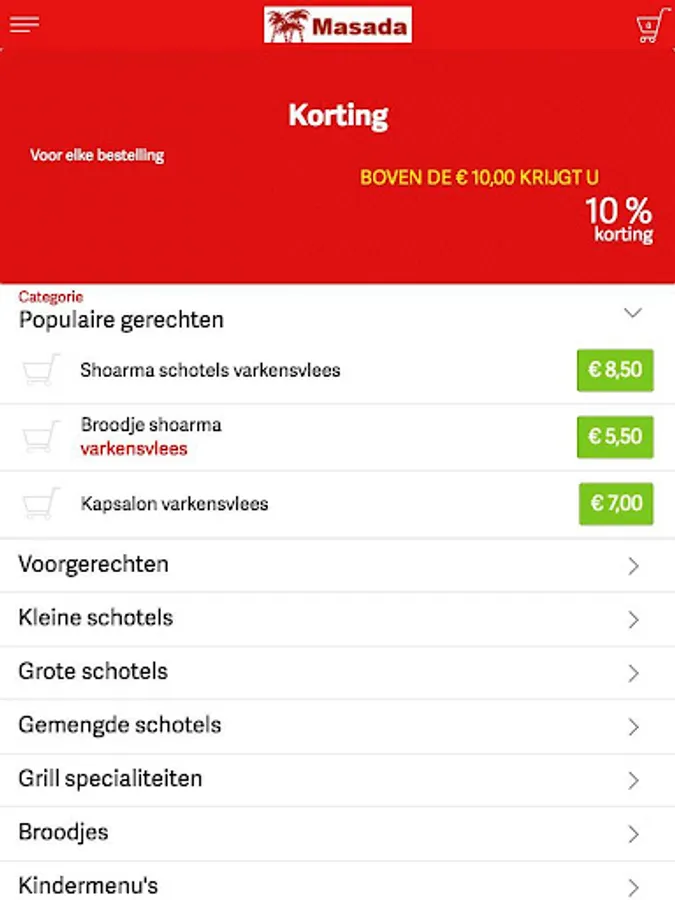 The Masada Breda app is designed to be able to place orders easily and quickly by means of a simple menu. In the menu you can choose to include popular dishes, but you can also draw up a menu.