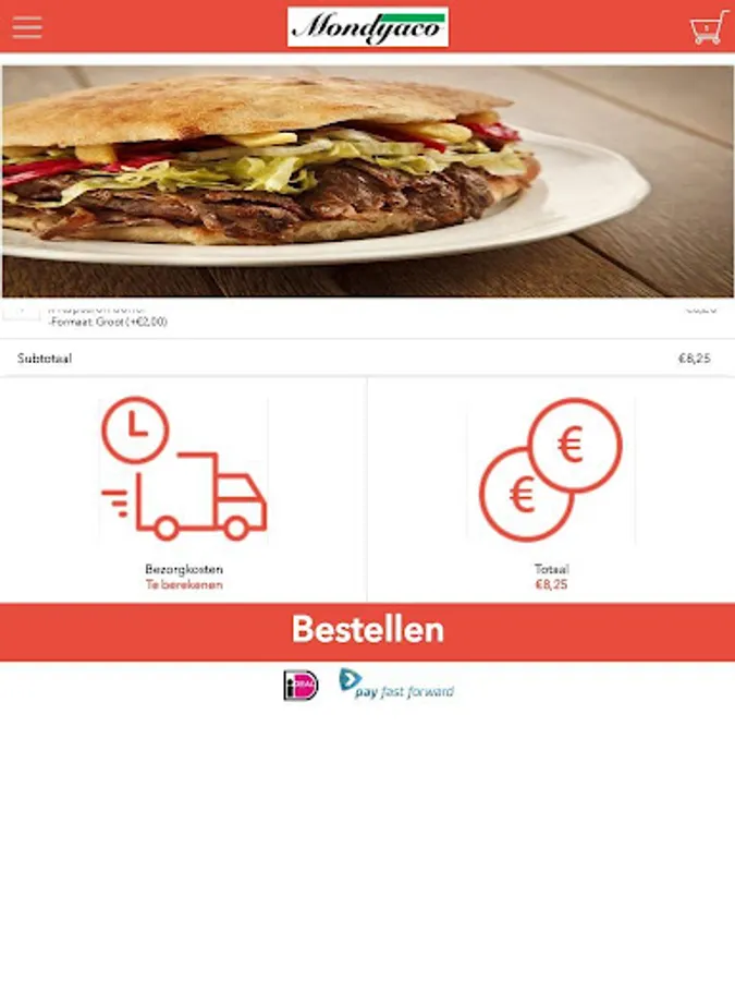 The Mondyaco Mijdrecht app is designed to be able to place orders easily and quickly by means of a simple menu. In the menu you can choose to include popular dishes, but you can also draw up a menu.