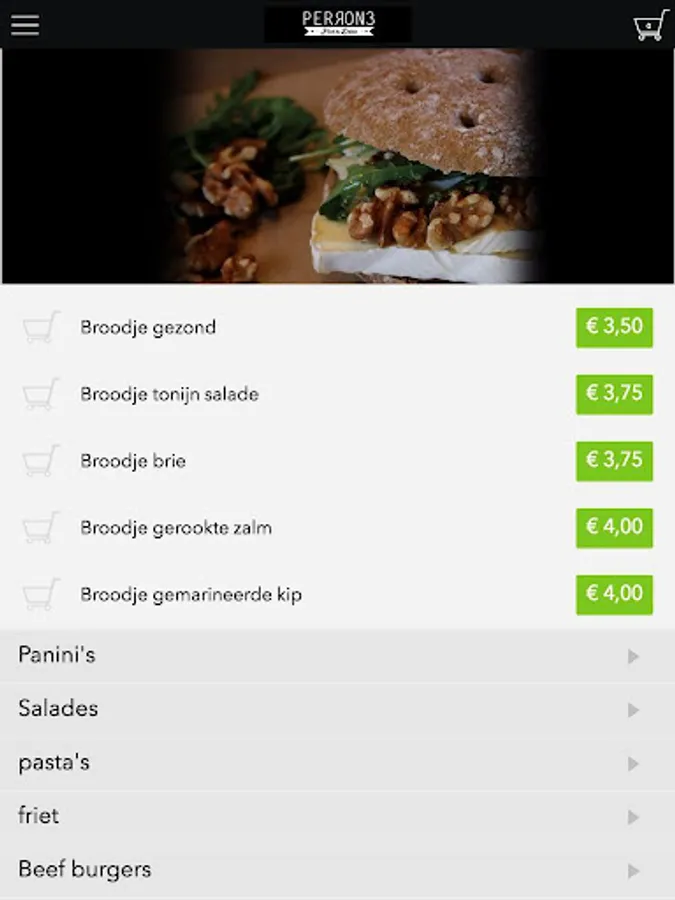The Perron 3 Boskoop app is designed to be able to place orders easily and quickly by means of a simple menu. In the menu you can choose to include popular dishes, but you can also draw up a menu.