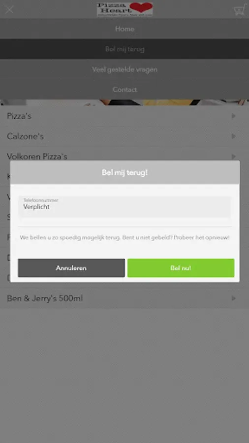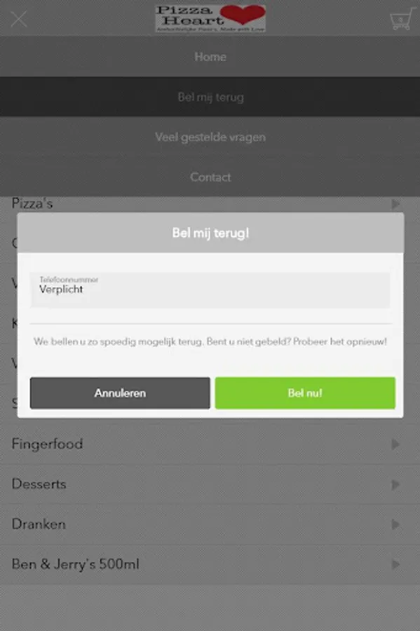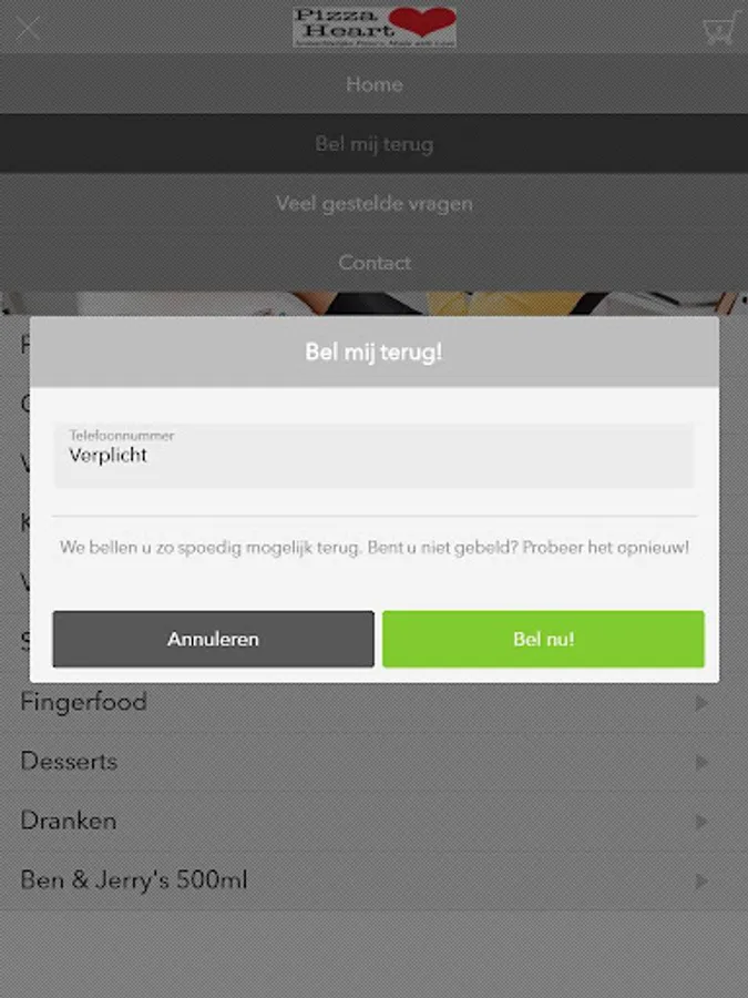 Do you have a question and / or comment on a particular dish and you want to be called back by us? You can do this by pressing the '' Call me back 'button and you will be free of charge called back by us!