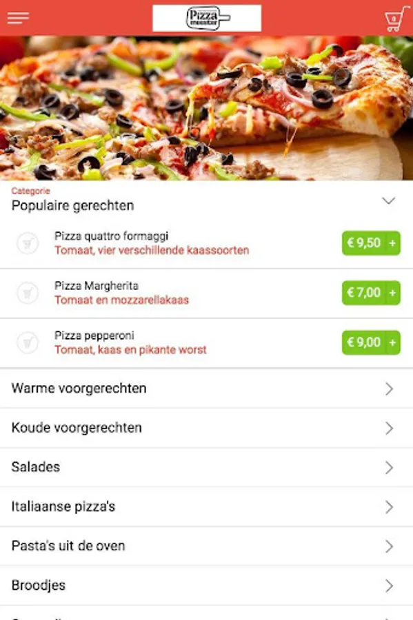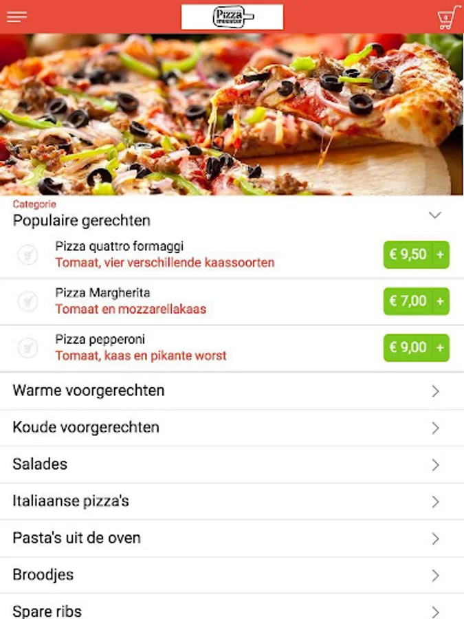 The Pizza Master app is designed to place orders easier and faster using a simple menu. In the menu you can choose to include popular dishes, but you can also draw up a menu.