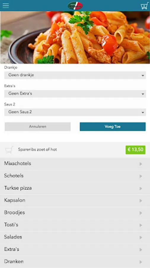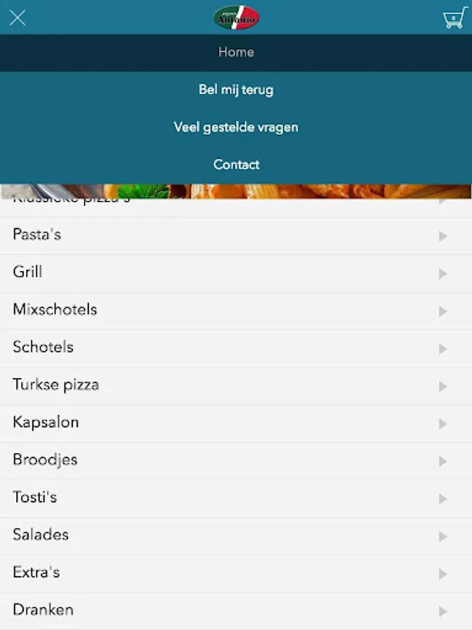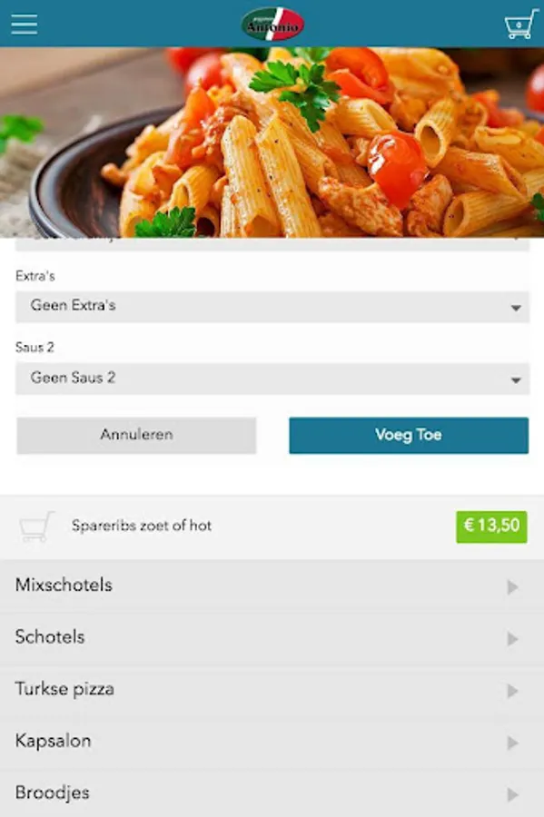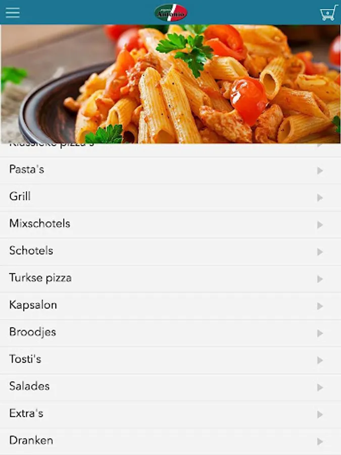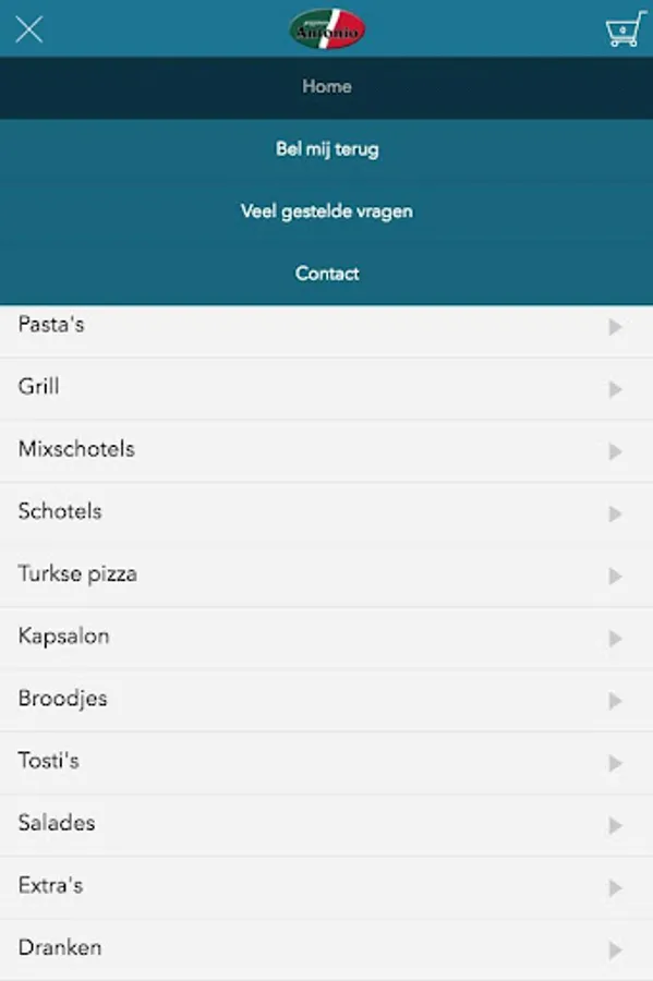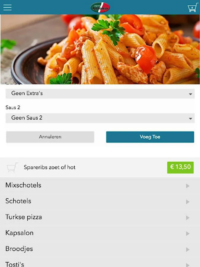 Antonio Waalwijk app is designed to be able to place orders easily and quickly by means of a simple menu. In the menu you can choose to include popular dishes, but you can also draw up a menu.