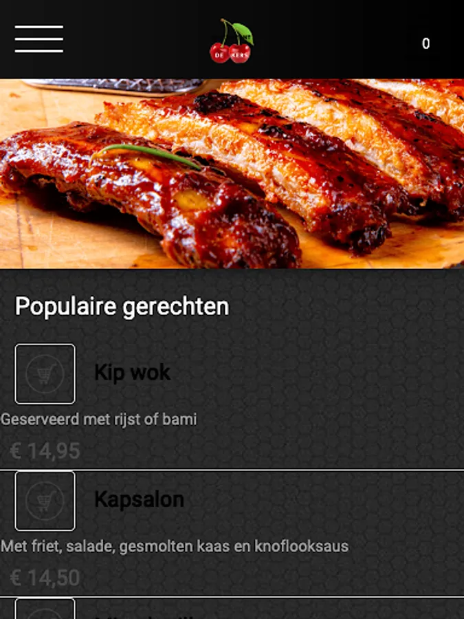 The Restaurant de Kers app is made to place an order easier and faster with a simple menu. In the menu you can choose from popular dishes, but you can also create a menu yourself.