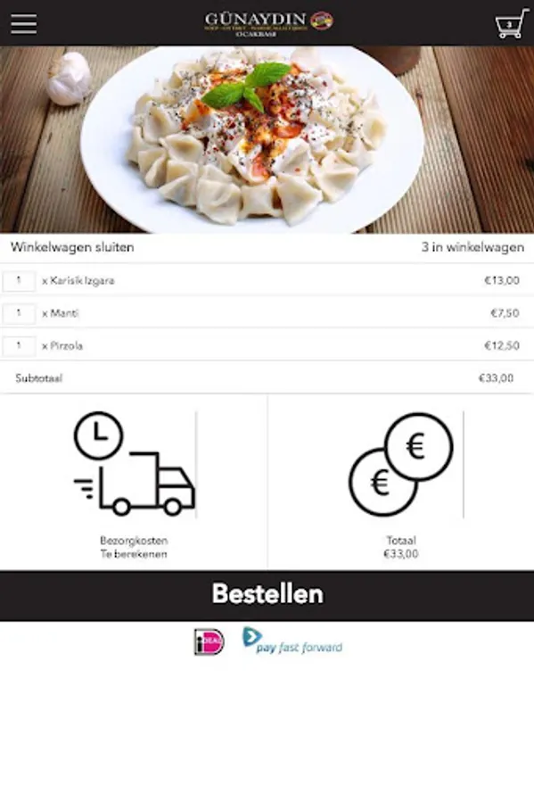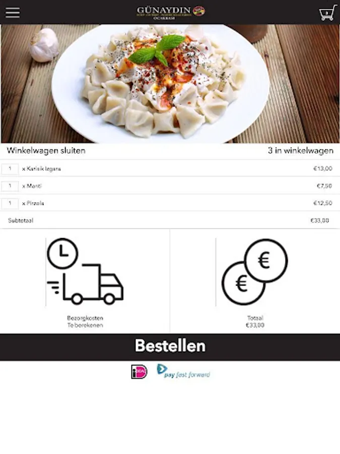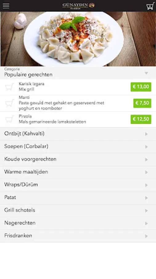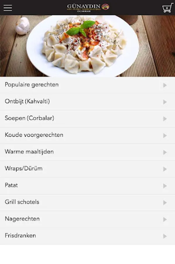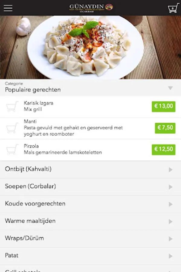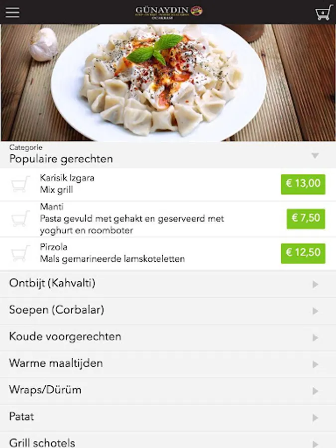 The Restaurant Gunaydin app is designed to be able to place orders easily and quickly by means of a simple menu. In the menu you can choose to include popular dishes, but you can also draw up a menu.