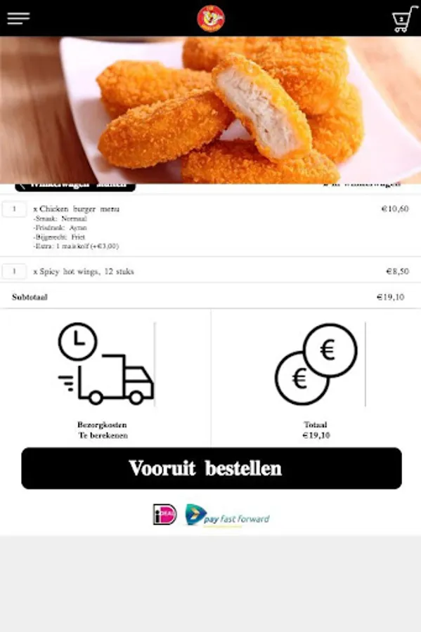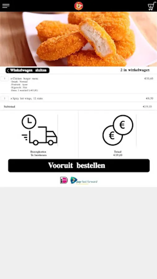The RFC Chicken Palace 2 Go app is made to be able to place an order more easily and quickly by means of a simple menu. In the menu you can choose popular dishes, but you can also create a menu yourself.