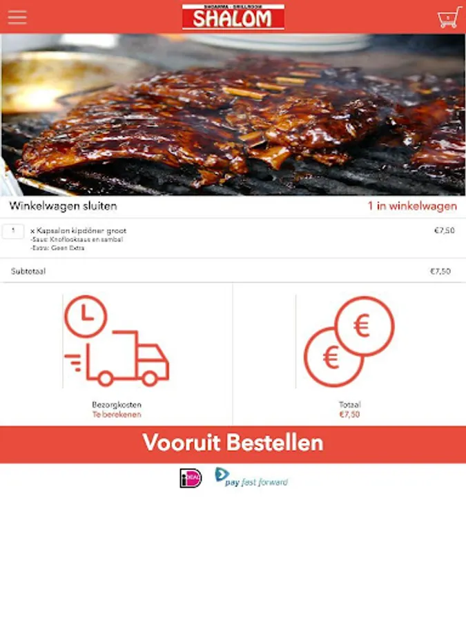 Shalom Hoogvliet app is designed to be able to place orders easily and quickly by means of a simple menu. In the menu you can choose to include popular dishes, but you can also draw up a menu.