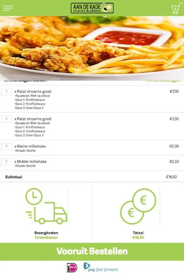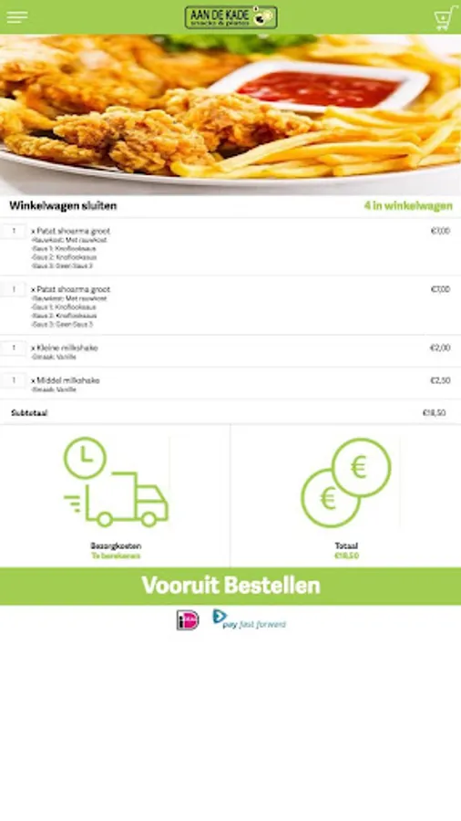 In the order history you can see what you have previously ordered from our restaurant. If you click the order button the order will automatically end up in the cart. So you do not have to select all again and you can immediately place your order.