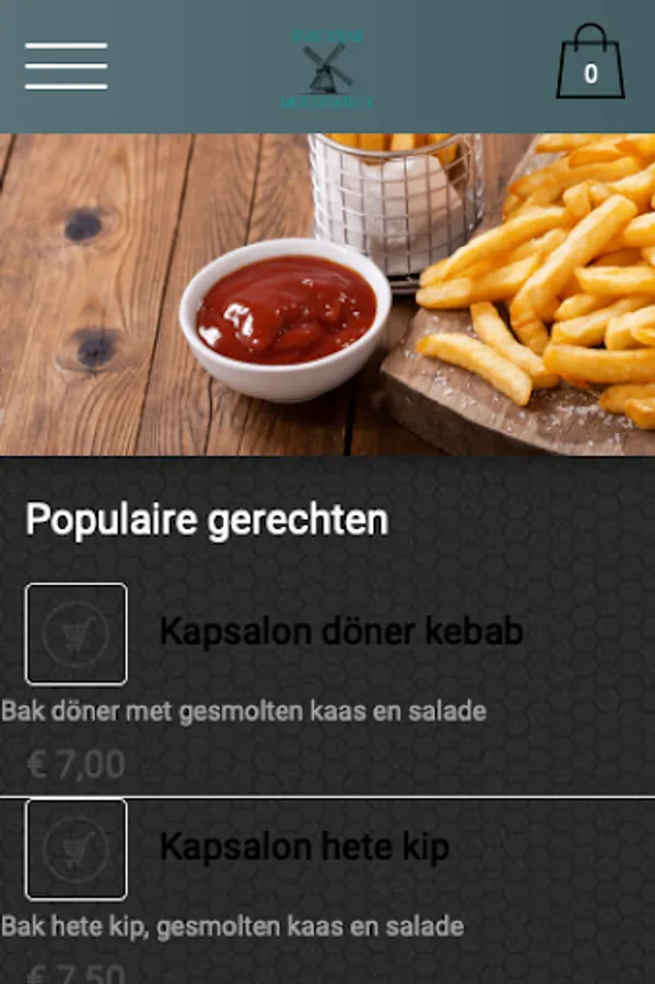 The Snackbar Molenwieck app is made to place an order easier and faster by means of a simple menu. In the menu you can choose from popular dishes, but you can also create a menu yourself.