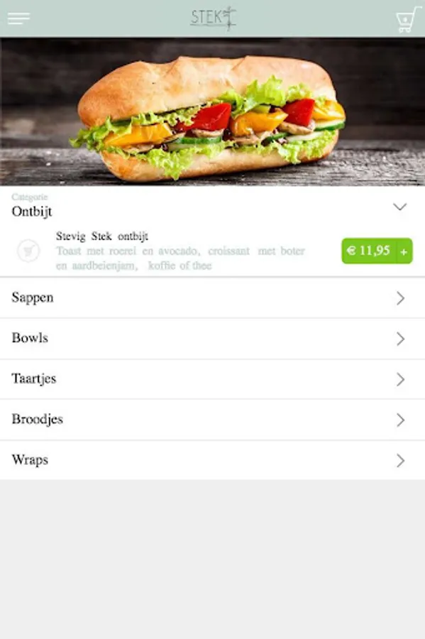 The Stek Leeuwarden app is made to place an order easier and faster by means of a simple menu. In the menu you can choose popular dishes, but you can also create a menu yourself.