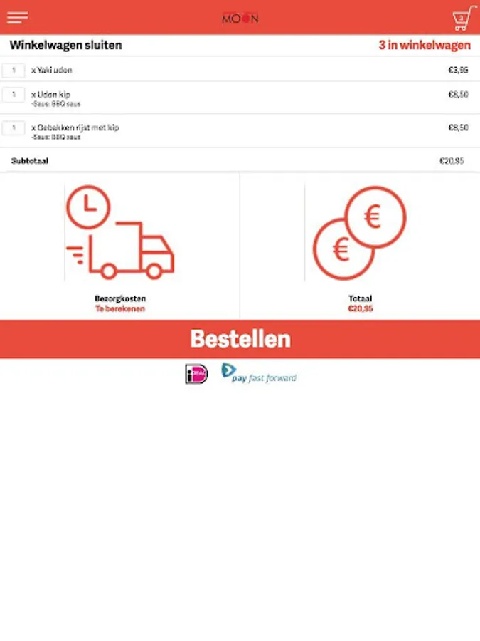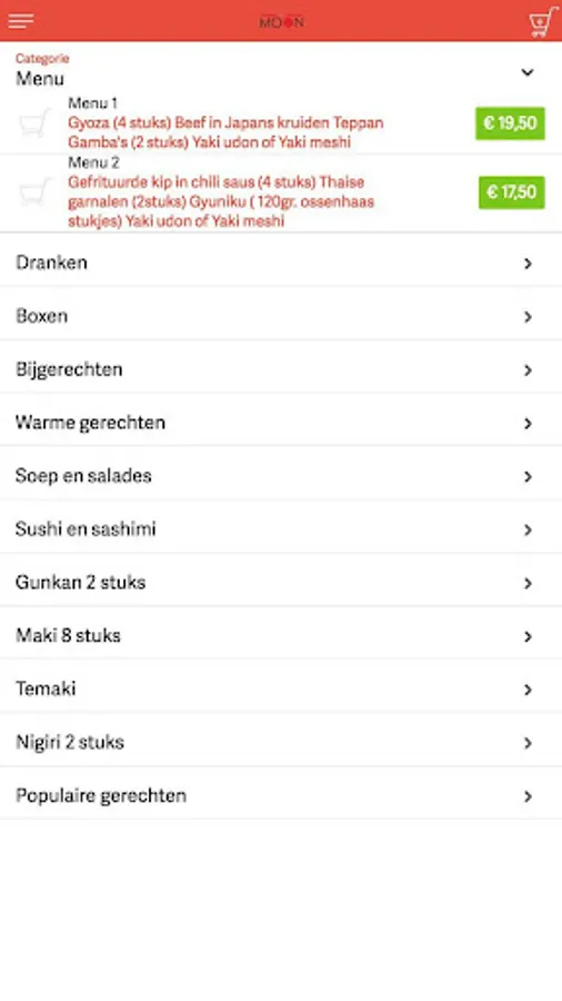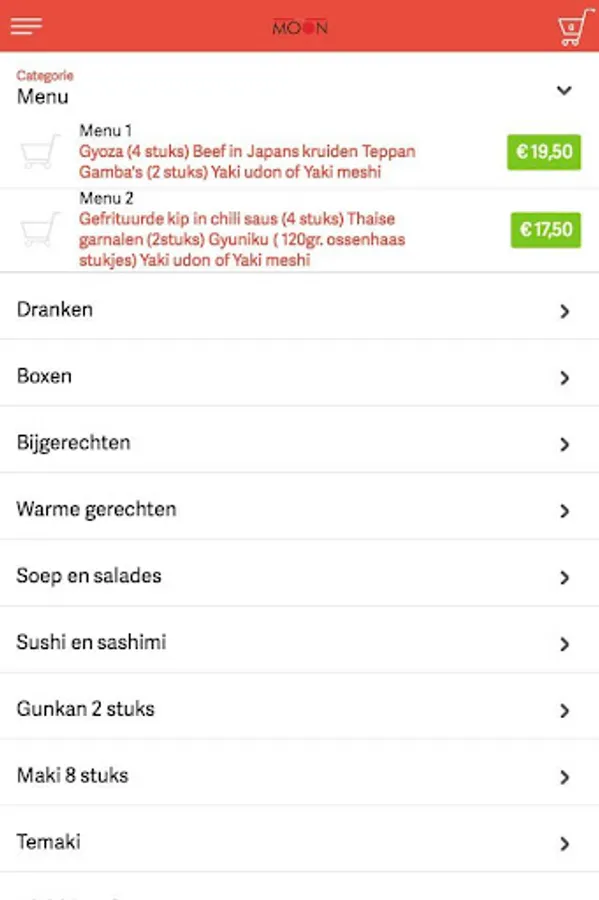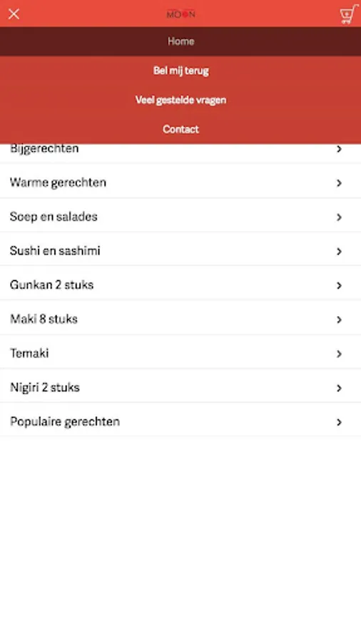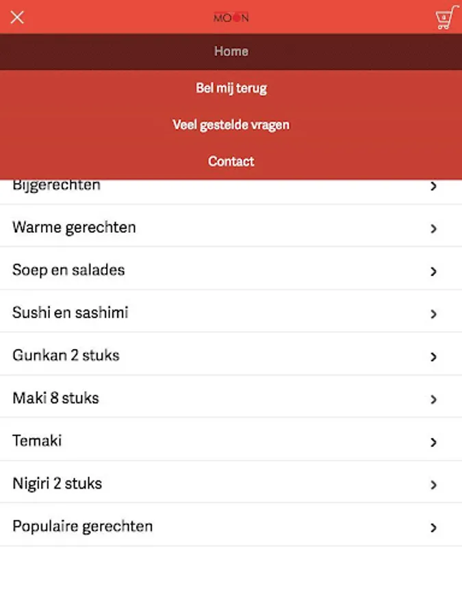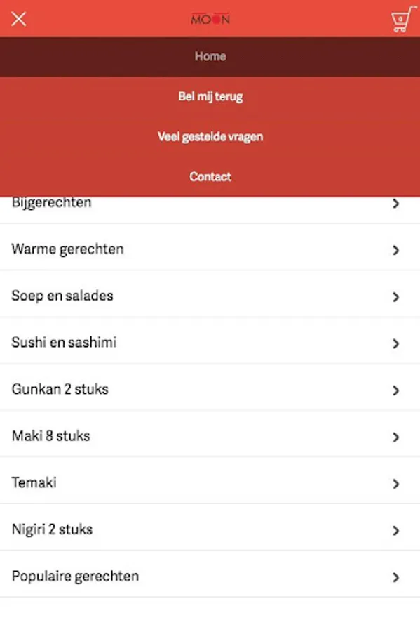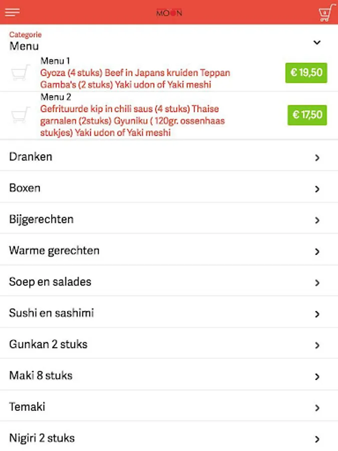 The sushi bar Moon app is designed to place orders easier and faster using a simple menu. In the menu you can choose to include popular dishes, but you can also draw up a menu.