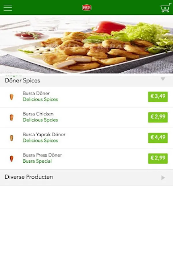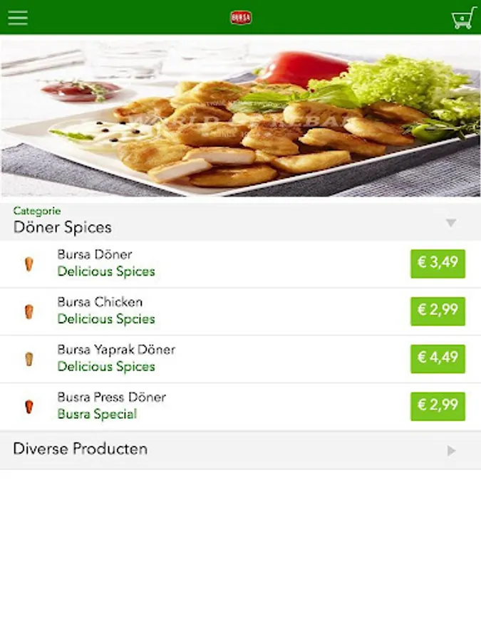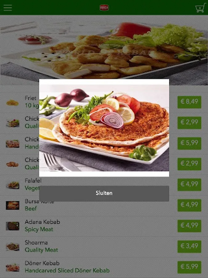 The Bursa Doner app is designed to be able to place orders easily and quickly by means of a simple menu. In the menu you can choose to include popular dishes, but you can also draw up a menu.