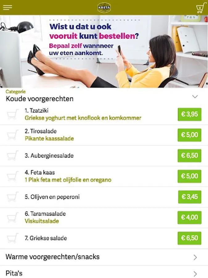 Download pick up and deliver the Crete app to quickly place an order at our restaurant!