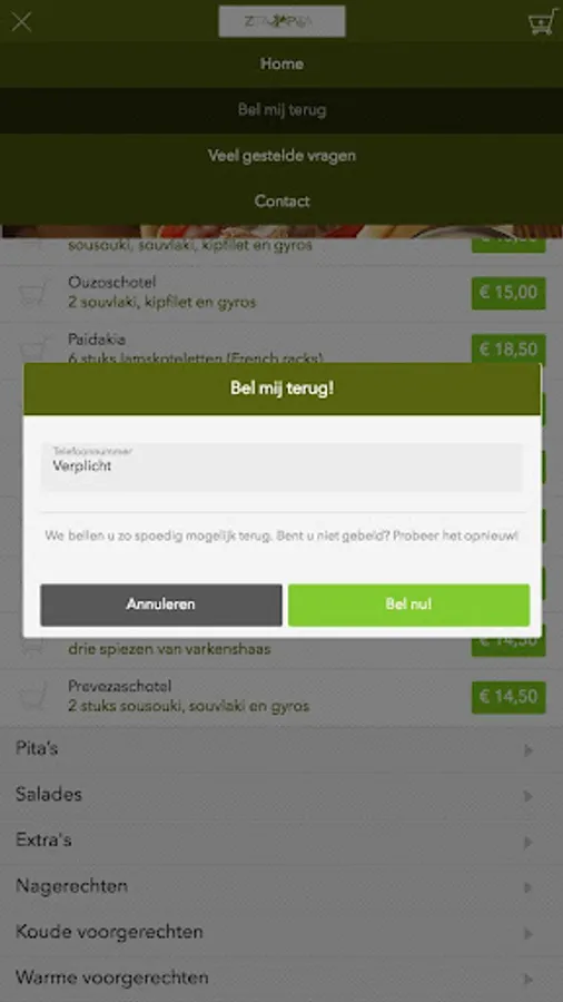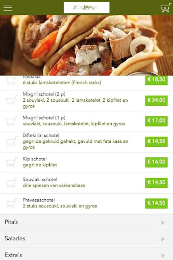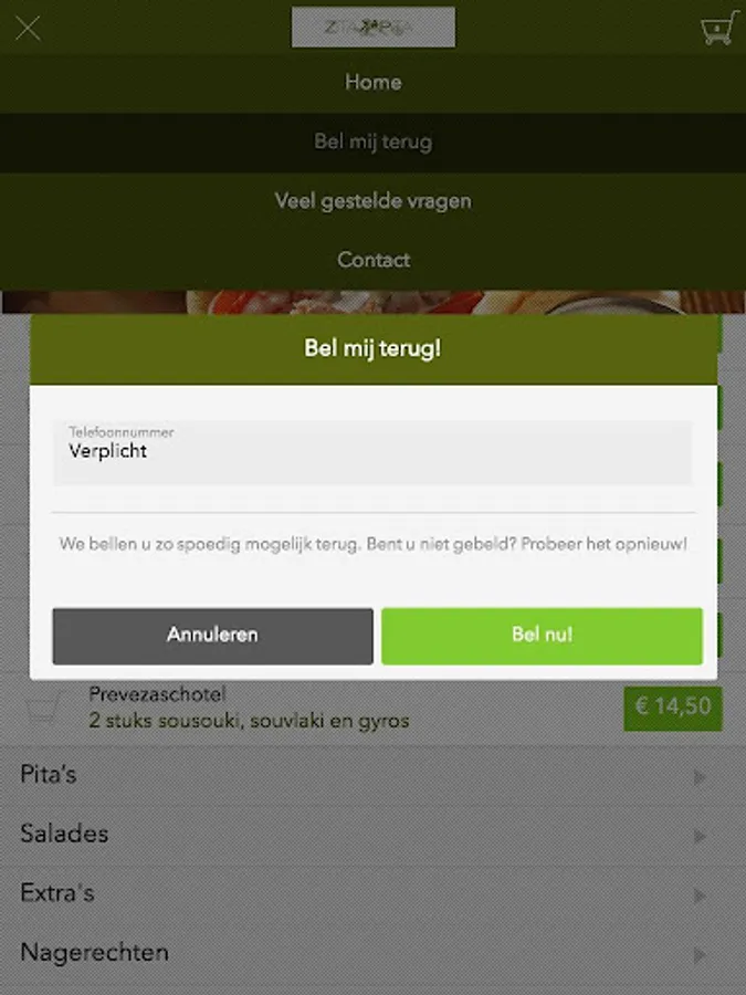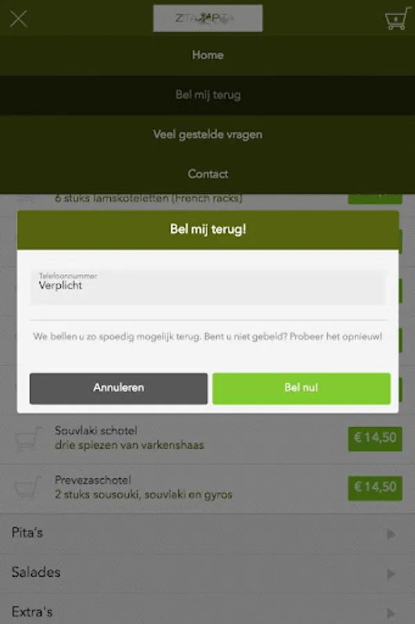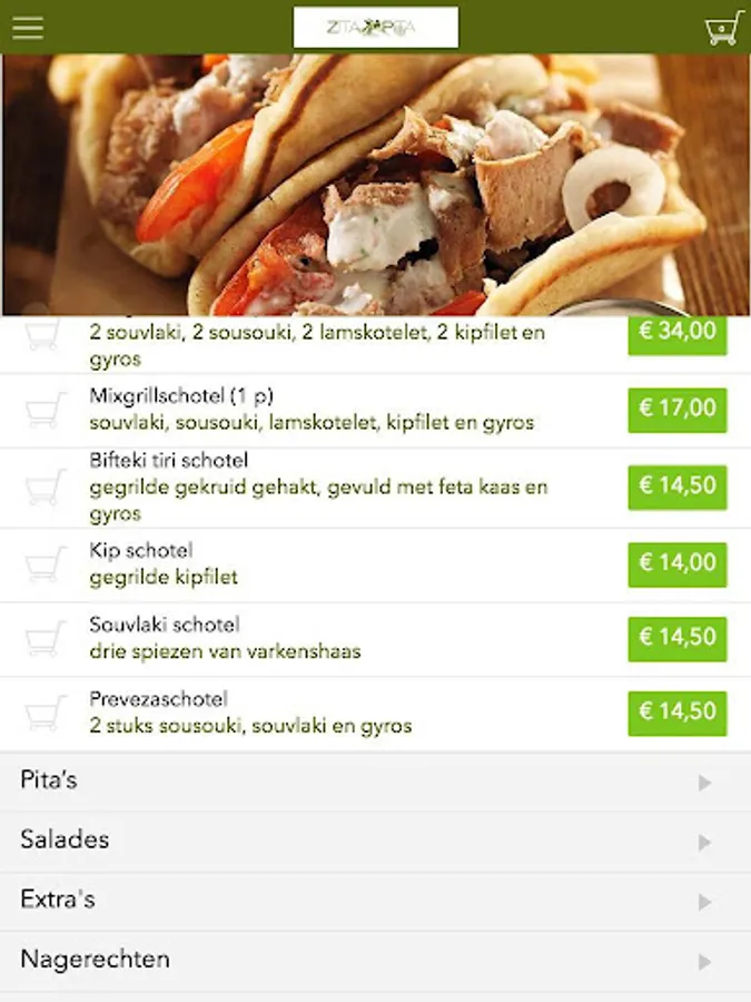 The Zita Pita app is designed to place orders easier and faster using a simple menu. In the menu you can choose to include popular dishes, but you can also draw up a menu.