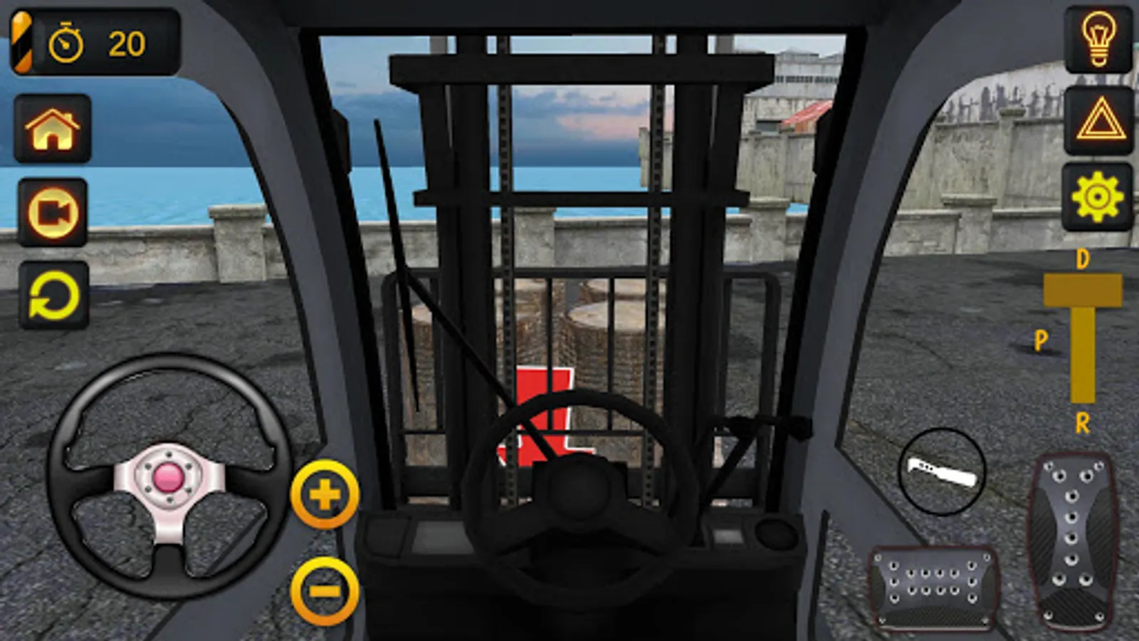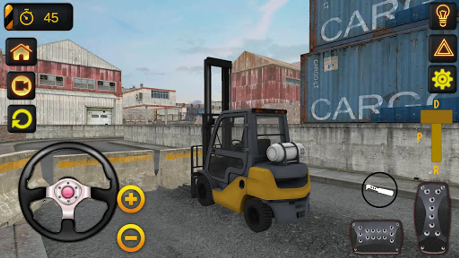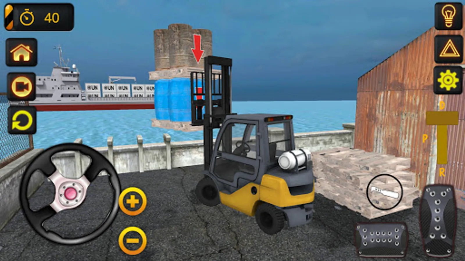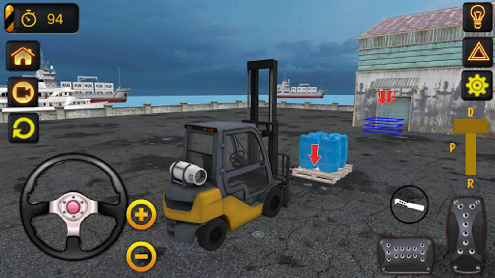 To do this, you need to use the gas and brake and steering buttons. When loading the cargo on the forklift, you can move the blades of the truck by holding down the buttons marked up and down. We wish you a pleasant game.