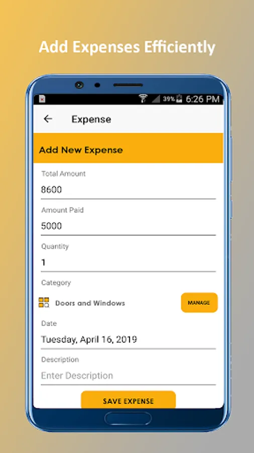 Construction ExpenseVUE app features include: