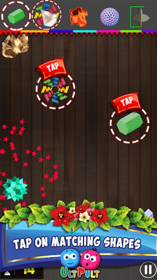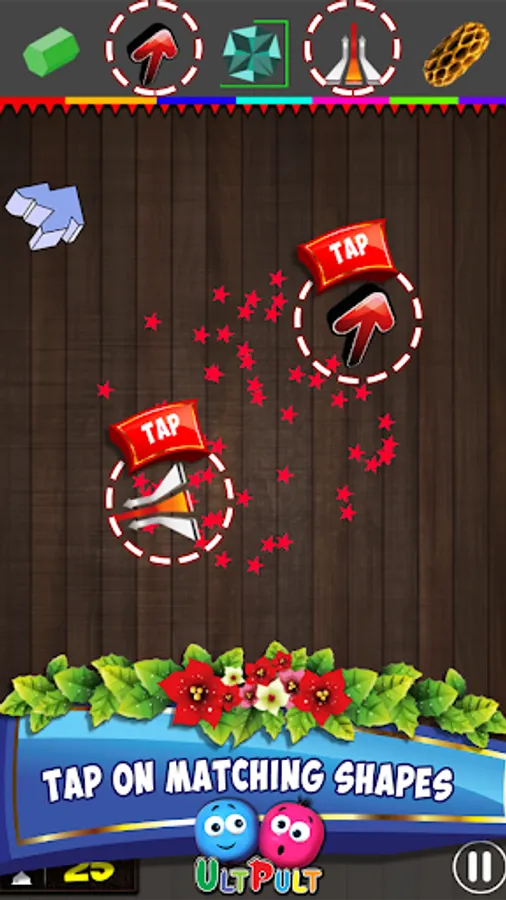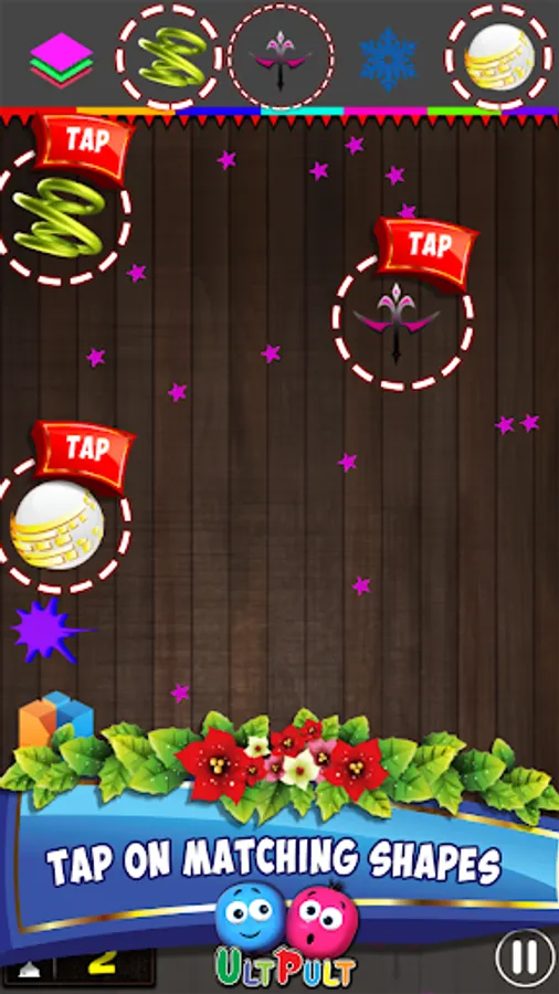Keep an eye on the different shapes in the top bar and match with the shapes coming up from down by tapping on them.
