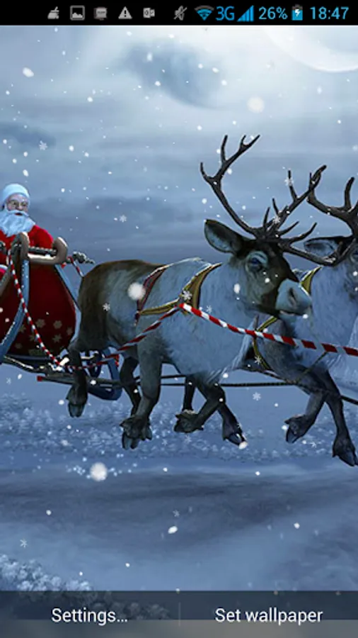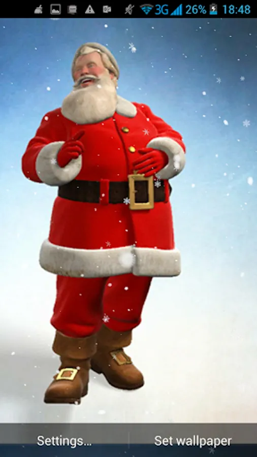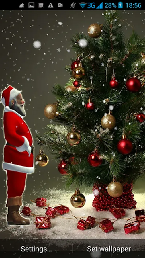 3D Santa Live Wallpaper is just what you need to get in holiday mood with lovely images of our favorite old man, all dressed in red, bringing laughter and joy! Enjoy these irresistible HD pictures of Santa Claus coming down the chimney or beautiful backgrounds with his cute reindeers stepping on the rooftops. This amazing new Live Wallpaper will pamper your senses with magical Christmas decorations for your mobile phone screen. Nothing says Happy Holidays like snowy white scenery and Santa singing joyful Christmas songs. 3D Santa Live Wallpaper offers you Christmas spirit throughout the year! Enjoy the winter magic with these high resolution holiday pictures anytime, anywhere! Embellish your Samsung Galaxy smartphone for free! If you are a winter person, you will love your new 3D Santa Live Wallpaper for all the magical moments you'll experience!