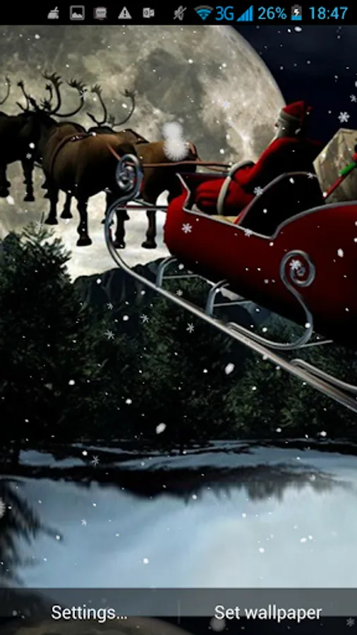 It’s holiday time and what everyone needs is a perfect Christmas app such as our brand new 3D Santa Live Wallpaper! Experience the magic of winter wonderland with amazing HD background pictures of beautiful snowy landscapes and holiday atmosphere. Santa is coming to town and you will be the first to meet him! Prepare some milk and cookies because someone is bringing you presents tonight! Watch irresistible Santa Claus riding his sleigh across the night sky! You will experience the true Christmas magic if you download this lovely winter app right now, completely free of charge!
