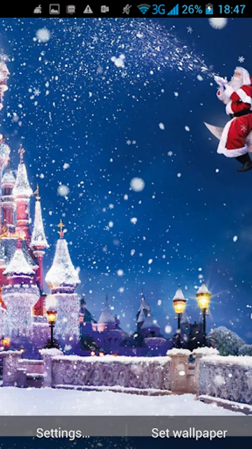 This sparkly new background Live Wallpaper will bring you back the joys of childhood when nothing was more fun than waiting for Santa to bring you presents beneath the beautifully decorated Christmas tree on the Christmas night. Let it snow throughout the year with this new high definition background images for your Samsung Galaxy or tablet device. Watch the snow falling on the rooftops while Santa Clause rides his sleigh across the starry night sky! Enjoy the beauty of glittering snow which will take your breath away! Experience the magic of this snowy landscape Live Wallpaper with snowflakes floating everywhere! You'll be smitten by 3D Santa high resolution Live Wallpapers.