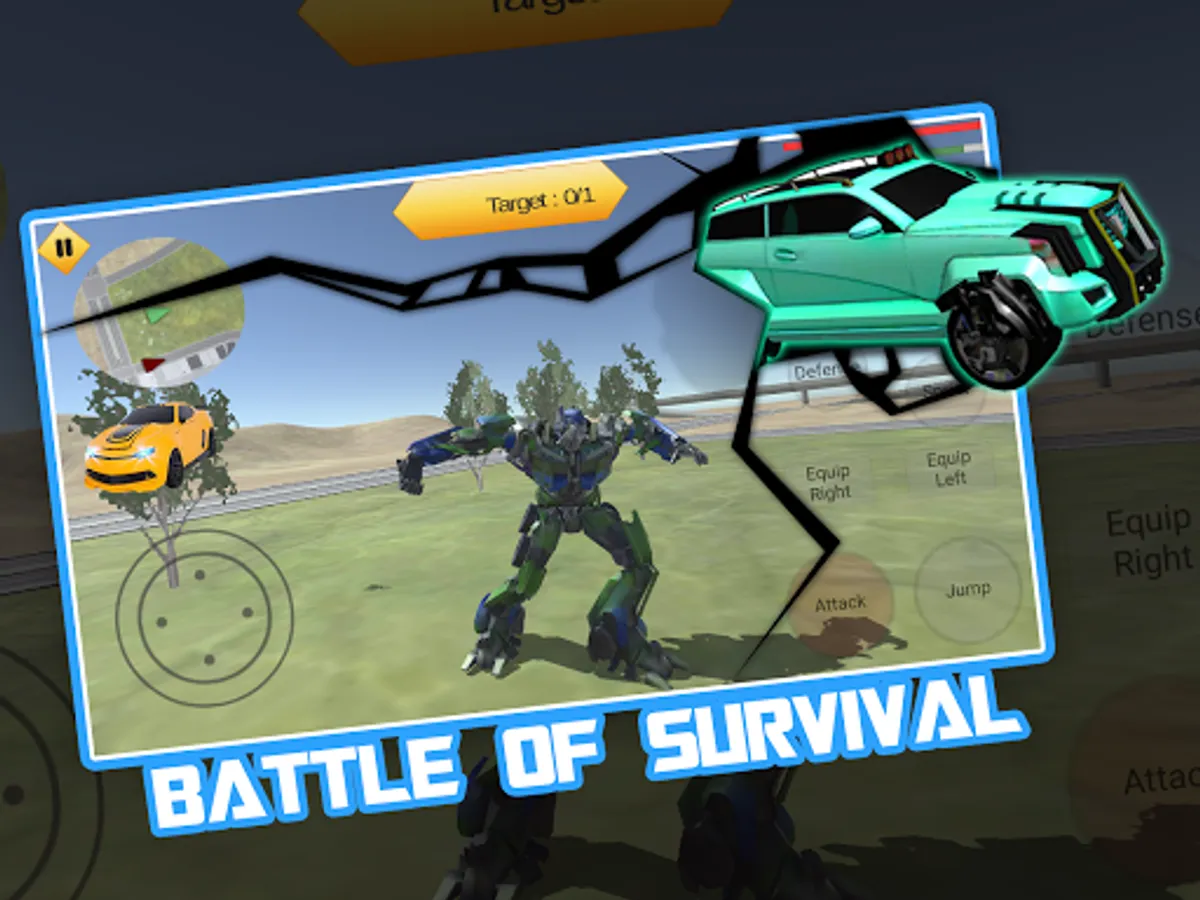 Play the toughest of robot fighting games and robot war games ever. Are you expert enough to control a mega robot and cars in this futuristic robot battle War? If yes, then you are at the right track to get your daily adventure doze with this fantastic robot car games new and free robot battle games! Drive, fire, and fight with all the cars and robots carefully and defeat them. Download and choose your Robotic CAR simulator 2016 to get into the ULTIMATE FIGHT!