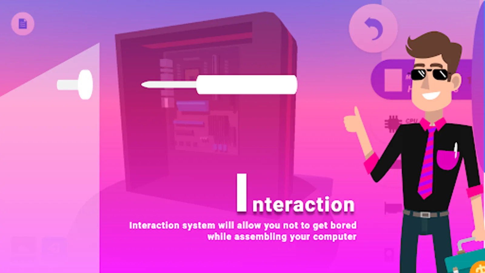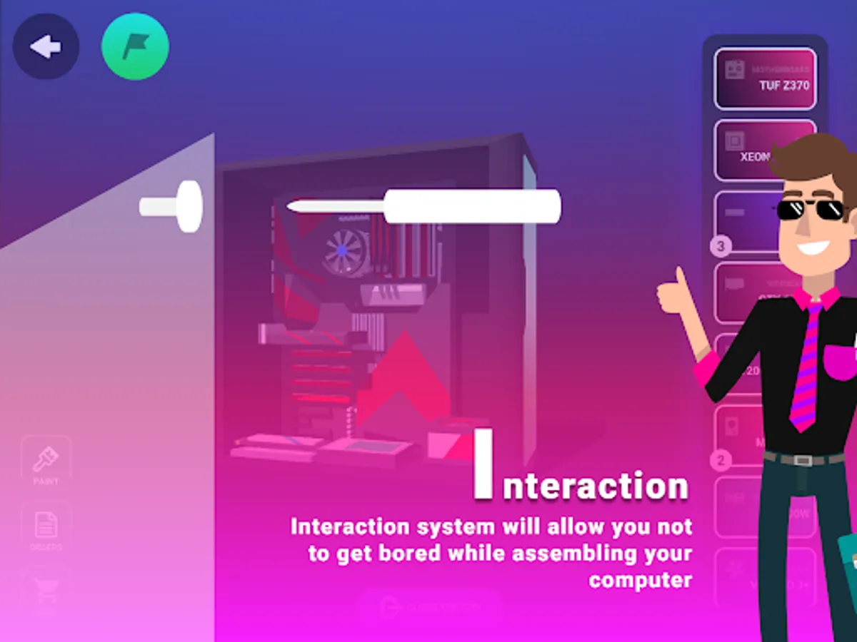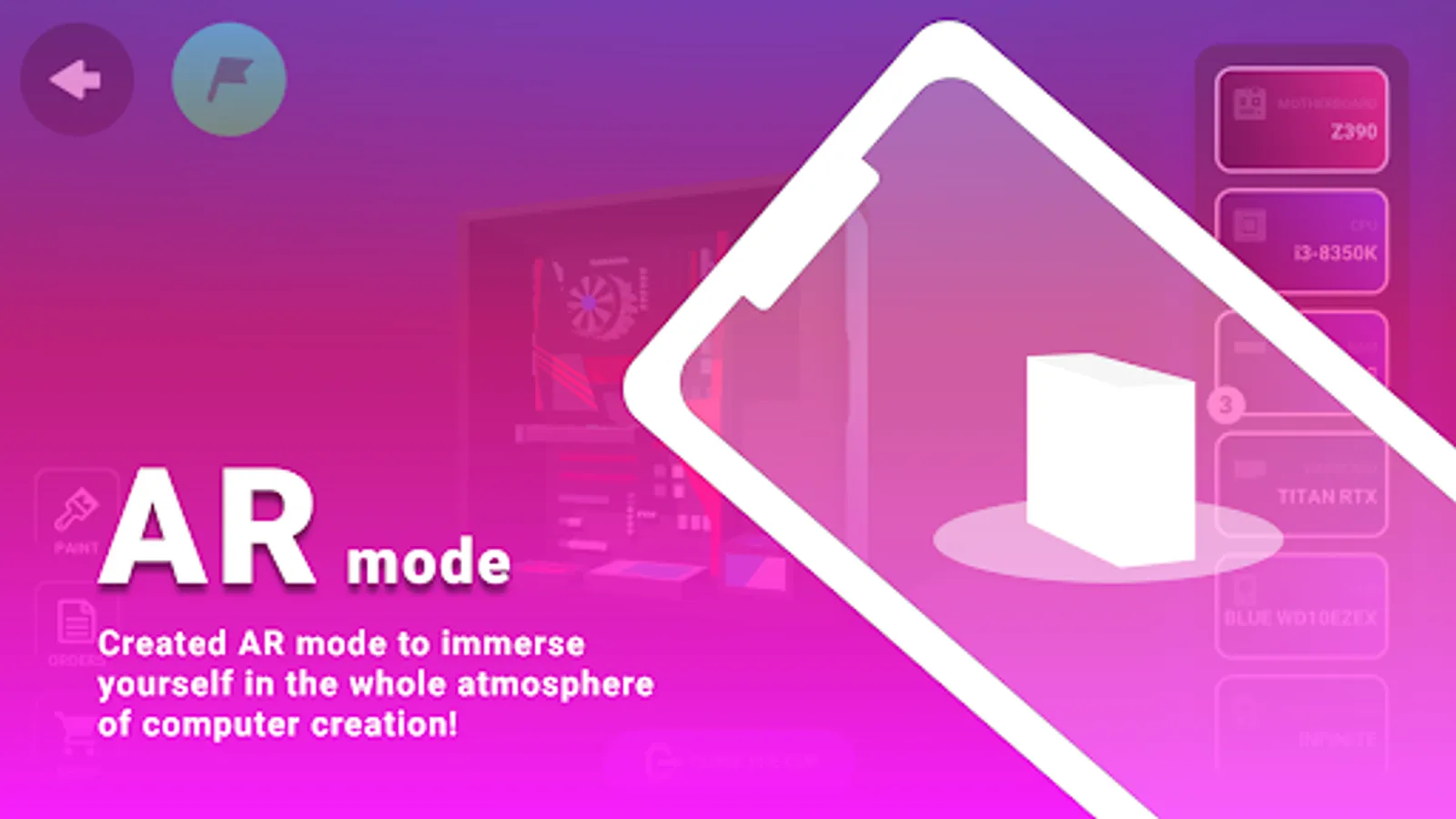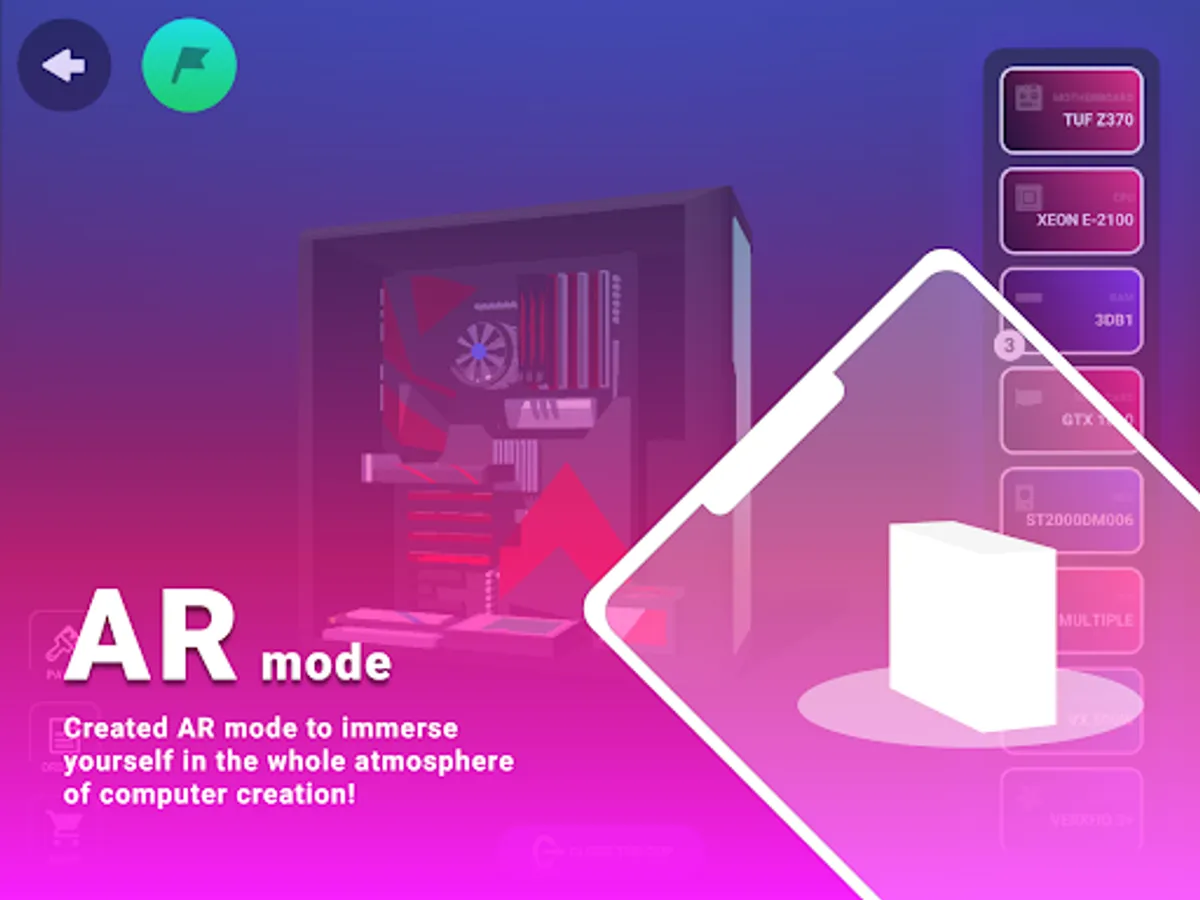 PC Creator Pro give you the unique opportunity to build a computer, starting from choosing computer's parts and finishing with installing the operating system, testing various software and games. So, PC built in 3D mode, installing of operating system, drivers, games and software is in your hands. In addition to this, you will be able to build a PC in AR mode.