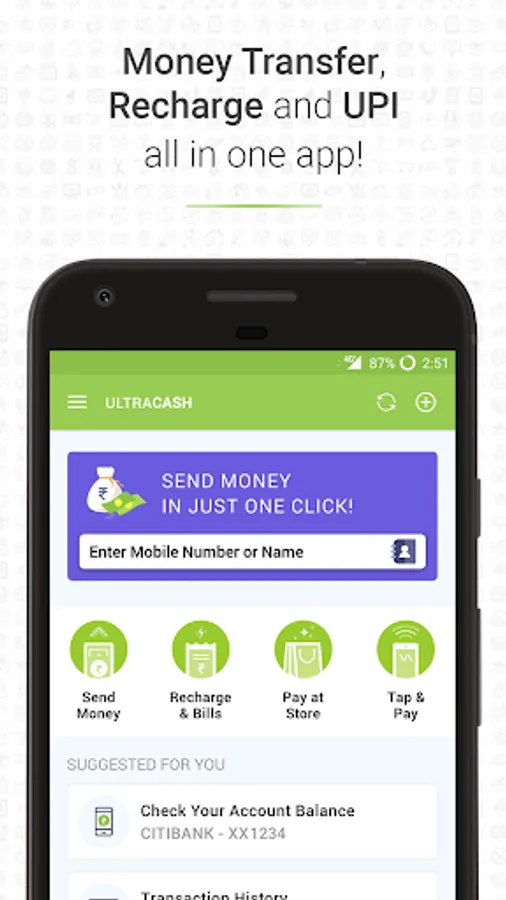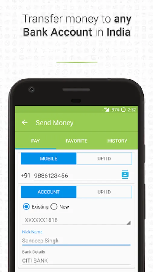 • Pay anyone by Instant - Money transfers to any Bank Account in India!