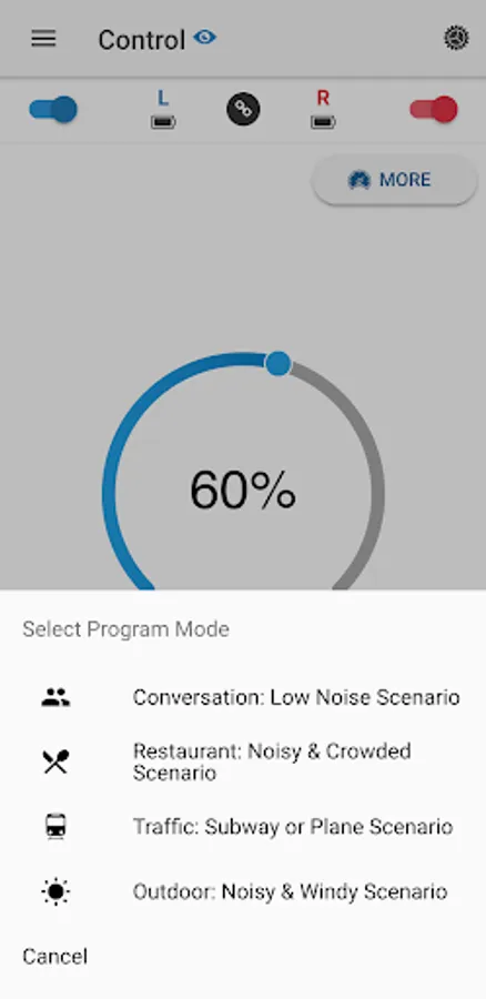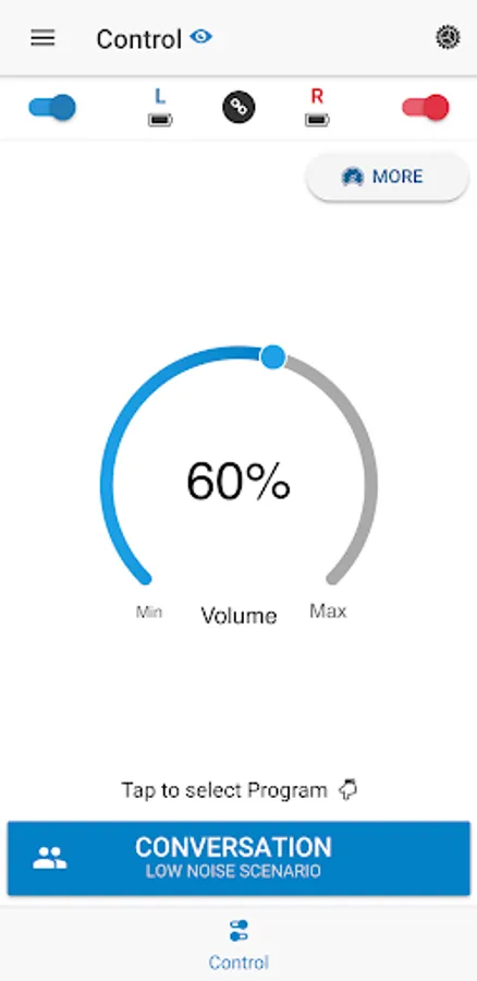 You can connect your Tweak Enhance OTC hearing aid to control volume and switch hearing program.