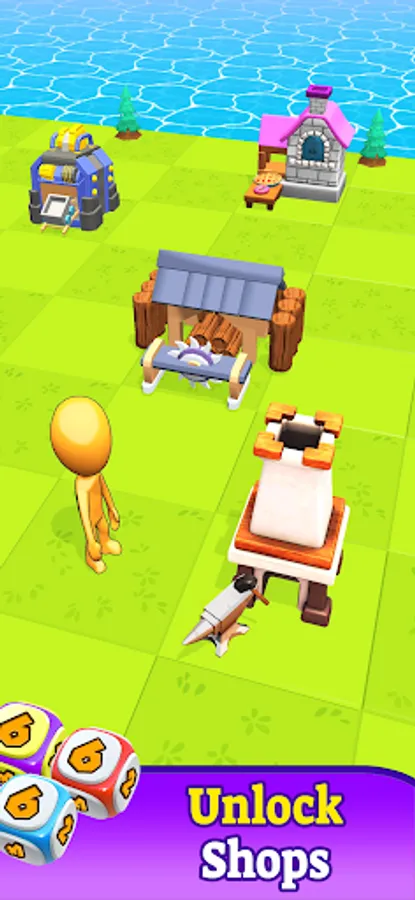 - Strategically gather resources, unlock new areas, and uncover the intriguing story of Dice Land.