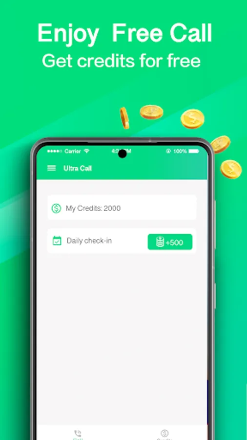Install to got 1000 credits, make call anytime. To earn more credits by daily check-in and more future activities.
